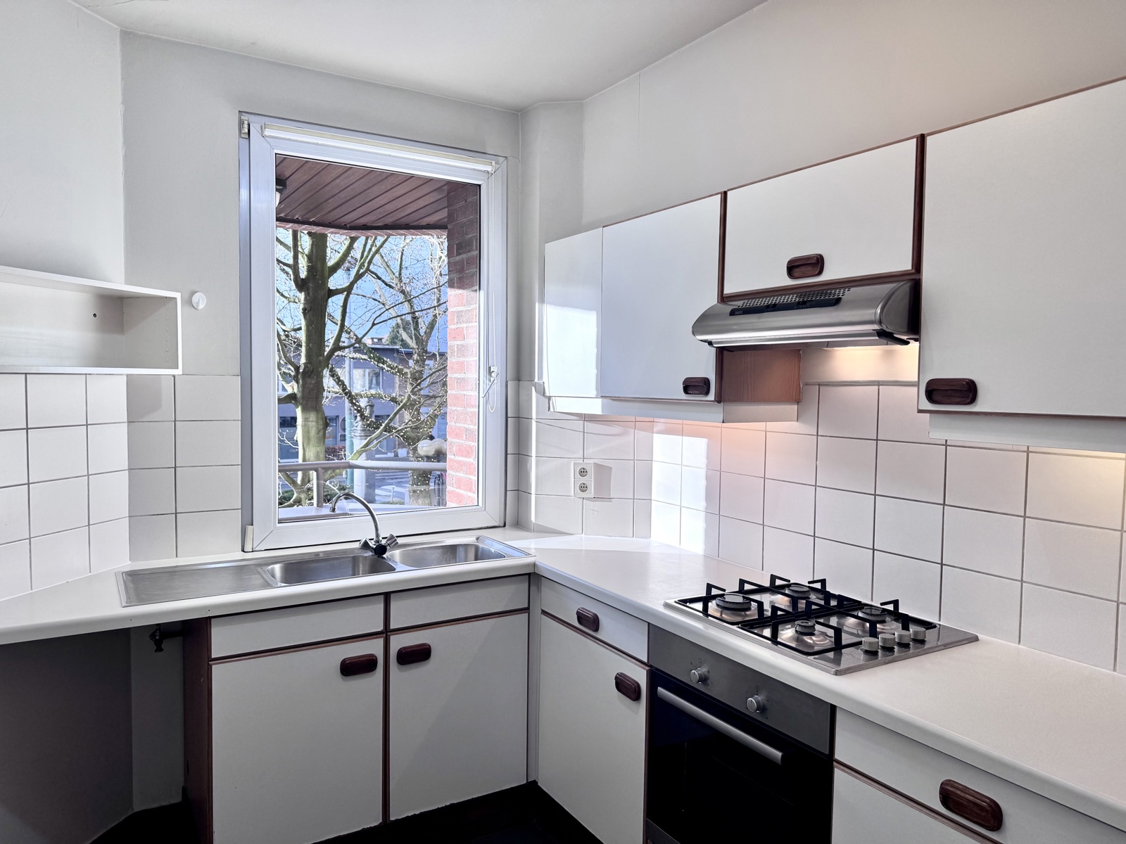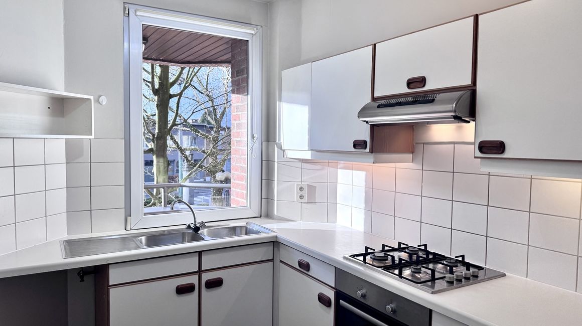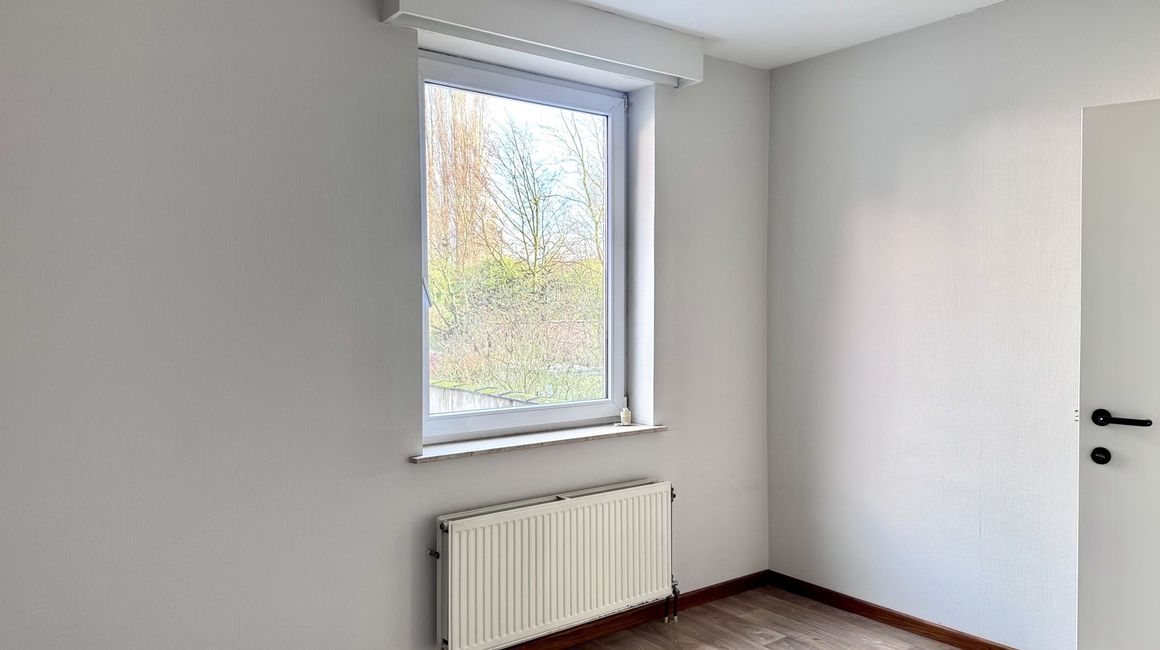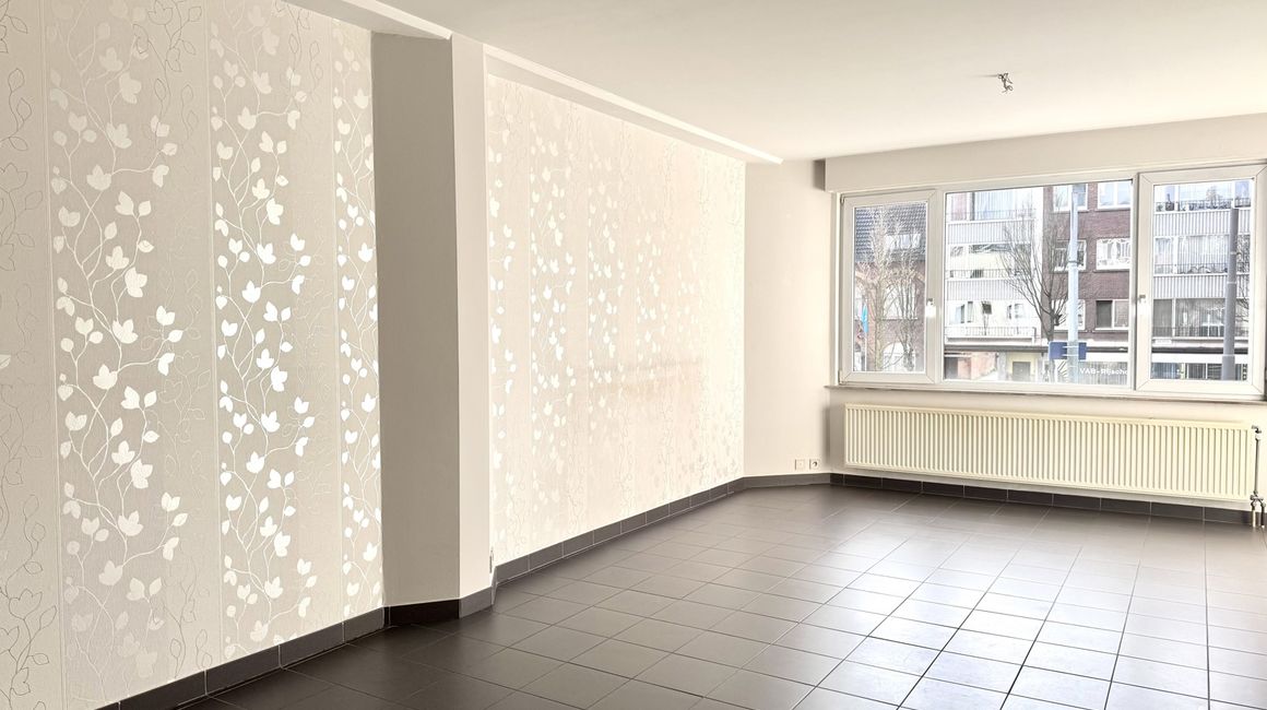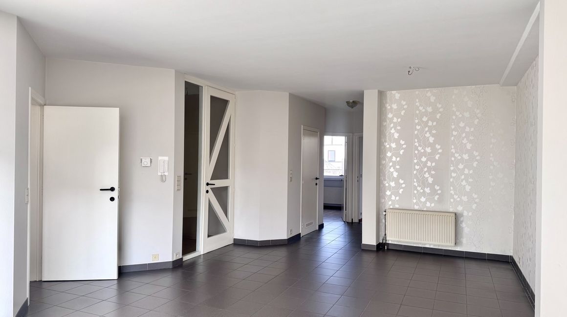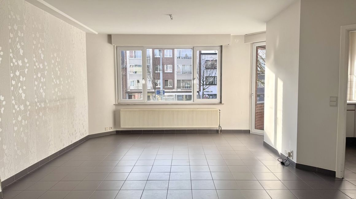 U betreedt het appartement via de INKOMHAL, die via een deur toegang geeft tot de LEEFRUIMTE van ca. 35 m². De leefruimte vormt het centrale verbindingspunt tussen de verschillende ruimtes. Vanuit de leefruimte hebt u toegang tot de KEUKEN van ca. 7,5 m², die uitkijkt op het BALKON van ca. 1,5 m². Deze is via de leefruimte te betreden. Via de NACHTHAL bereikt u de BADKAMER van ca. 4,7 m², uitgerust met een ligbad dat tevens als douche dient en een lavabo. Aan de andere zijde bevindt zich een APART TOILET van ca. 1,5 m², met daarnaast de WASPLAATS van ca. 1,60 m², waar de verwarmingsketel is opgesteld. Achteraan het appartement bevinden zich twee SLAAPKAMERS ca. 12 m² en ca. 7,10 m².