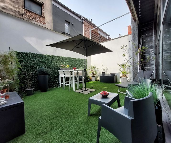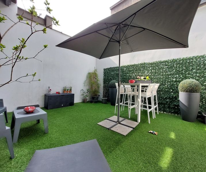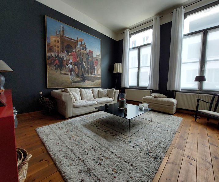 GEMEUBELD Zeer licht 1 slaapkamer gelijkvloers appartement ca. 75mē met ruim terras/stadstuintje gelegen in een kleinschalig gebouw in een trendy buurt in hartje Antwerpen nabij Stadsschouwburg, Hopland, Meir, diverse hippe kledingwinkels en trendy restaurants, Opera Antwerpen, Stadspark, Centraal Station, openbaar vervoer.