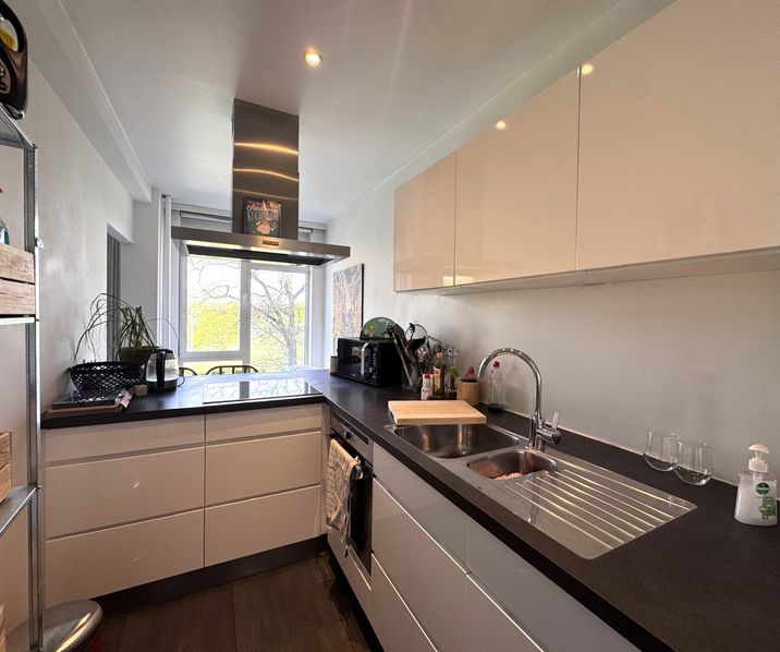 Park Den Brandt - gerenoveerd twee slaapkamer appartement met zonnig terras ca. 8mēgelegen op de tweede verdieping in residentie 'Dikke Mee' op de hoek van de Beukenlaan en de Eglantierlaan, net op de grens tussen Antwerpen en Wilrijk. Goed onderhouden gebouw op uitstekende locatie nabij Park den Brandt, Nachtegalenpark, belangrijke in-en uitvalswegen, scholen, openbaar vervoer, winkels.