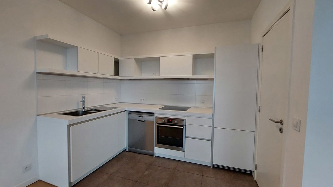 Kom binnen we betreden het appartement langs de INKOMHAL welke beschikt over een aparte TOILET op tegelvloer. Vervolgens betreden we de lichte LEEFRUIMTE met open KEUKEN van ca. 6m² voorzien van kookplaat, dampkap, dubbele spoelbak, ijskast met diepvriesvak en vaatwasmachine. Aparte BERGING van ca. 2,4m² voorzien van aansluitingen voor wasmachine en droogkast
