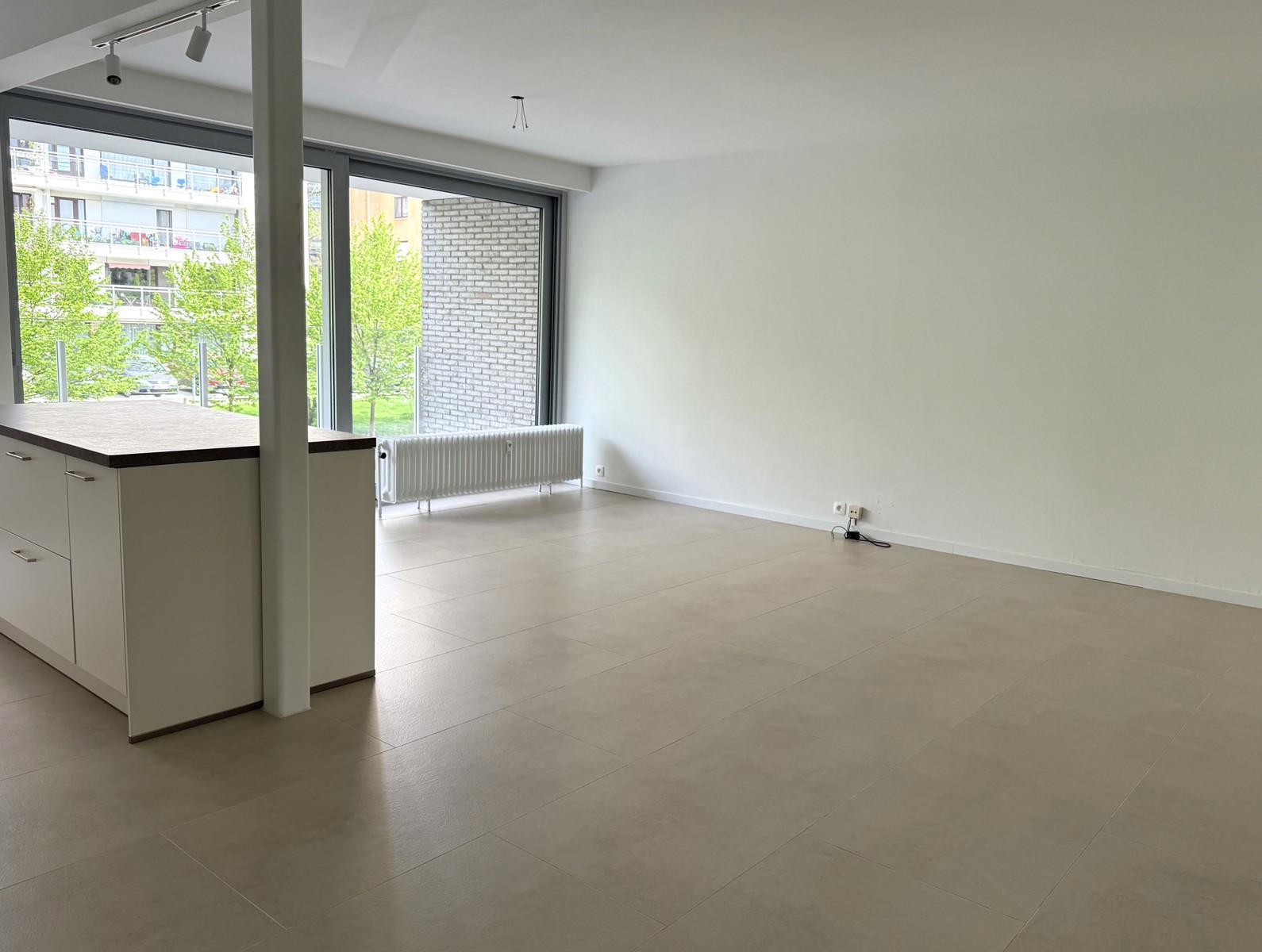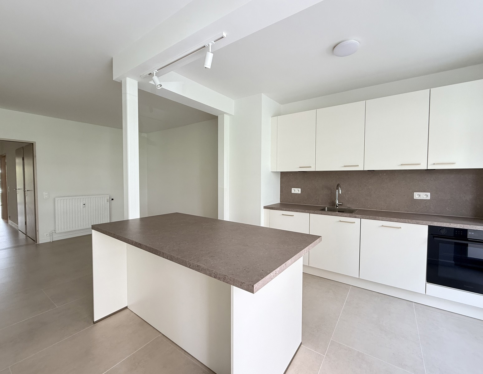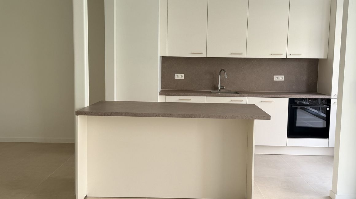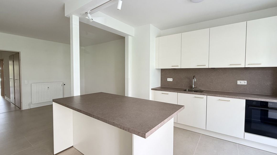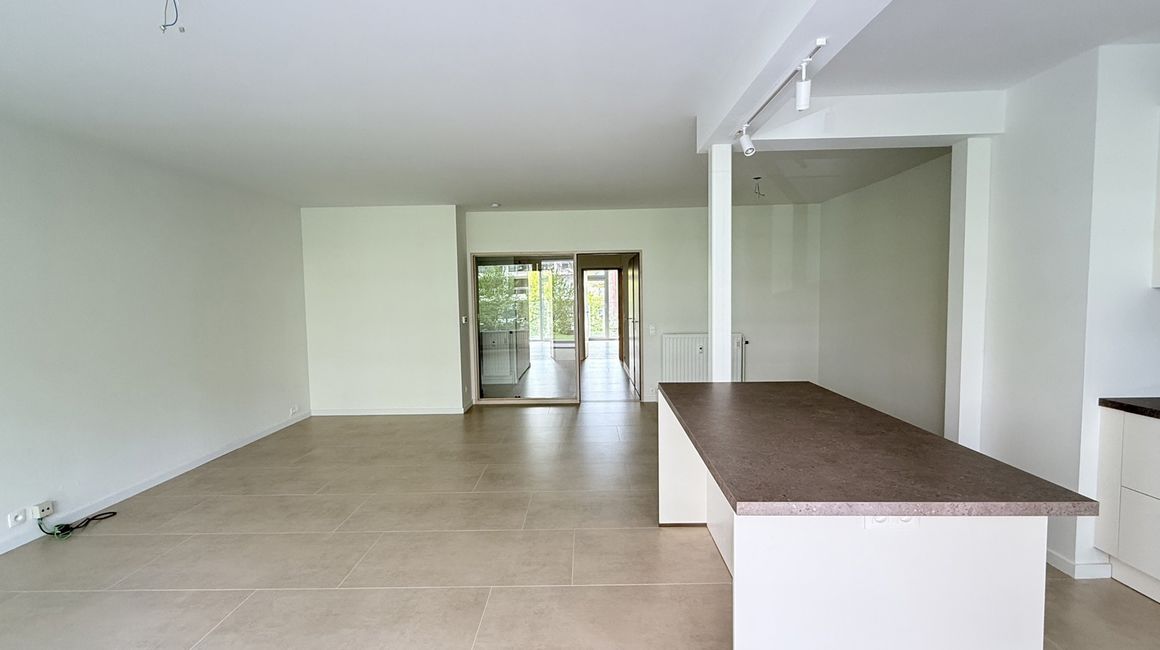 De leefruimte met open keuken vormt een aangenaam geheel van ca. 7,56m x 6,61m, volledig afgewerkt met een stijlvolle beige natuurstenen vloer met grote tegels. De keuken is hoogwaardig geïnstalleerd en voorzien van opbergkasten, een kookeiland met ontbijttoog en toestellen; een vaatwasser, een spoelbak, een diepvries, een warmelucht oven met steamer functie en een inductiekookplaat met een ingebouwde afzuiging. Vanuit de living heeft u direct toegang tot het eerste ruime terras van ca. 6,58m x 1,21m, een ideale plek om in alle rust te ontspannen.