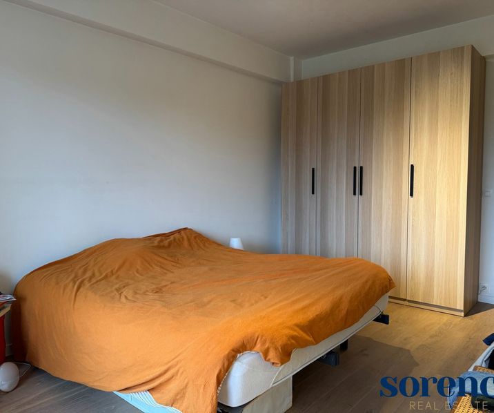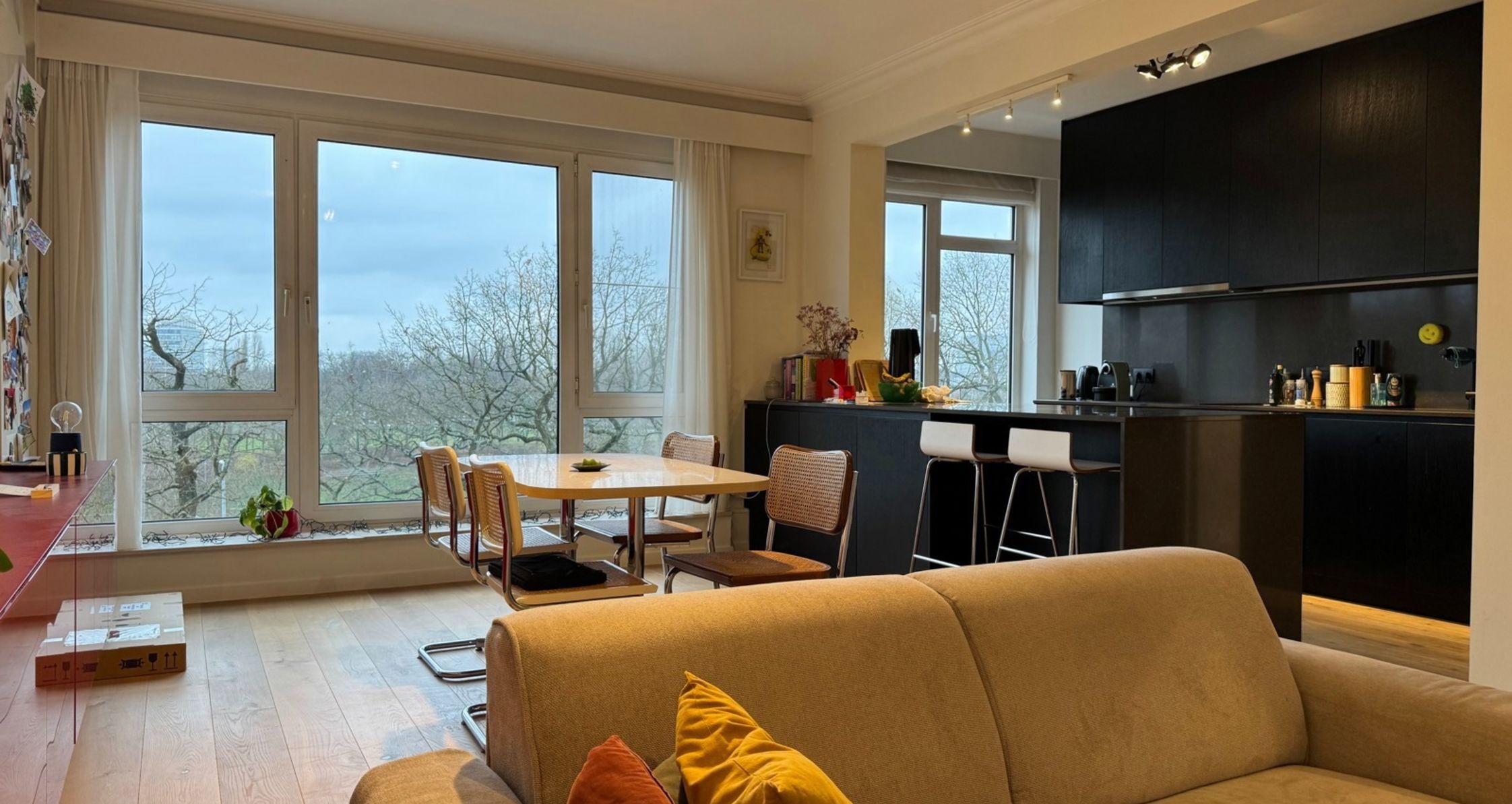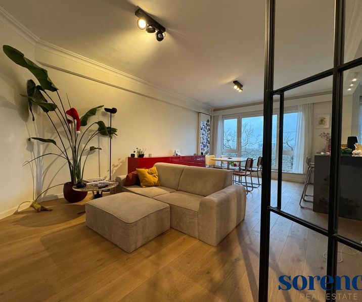 GEMEUBELD - Park Den Brandt - gerenoveerd twee slaapkamer appartement met zonnig terras ca. 10mēgelegen op de vierde verdieping in residentie 'Dikke Mee' op de hoek van de Beukenlaan en de Eglantierlaan, net op de grens tussen Antwerpen en Wilrijk. Goed onderhouden gebouw op uitstekende locatie nabij Park den Brandt, Nachtegalenpark, belangrijke in-en uitvalswegen, scholen, openbaar vervoer, winkels.