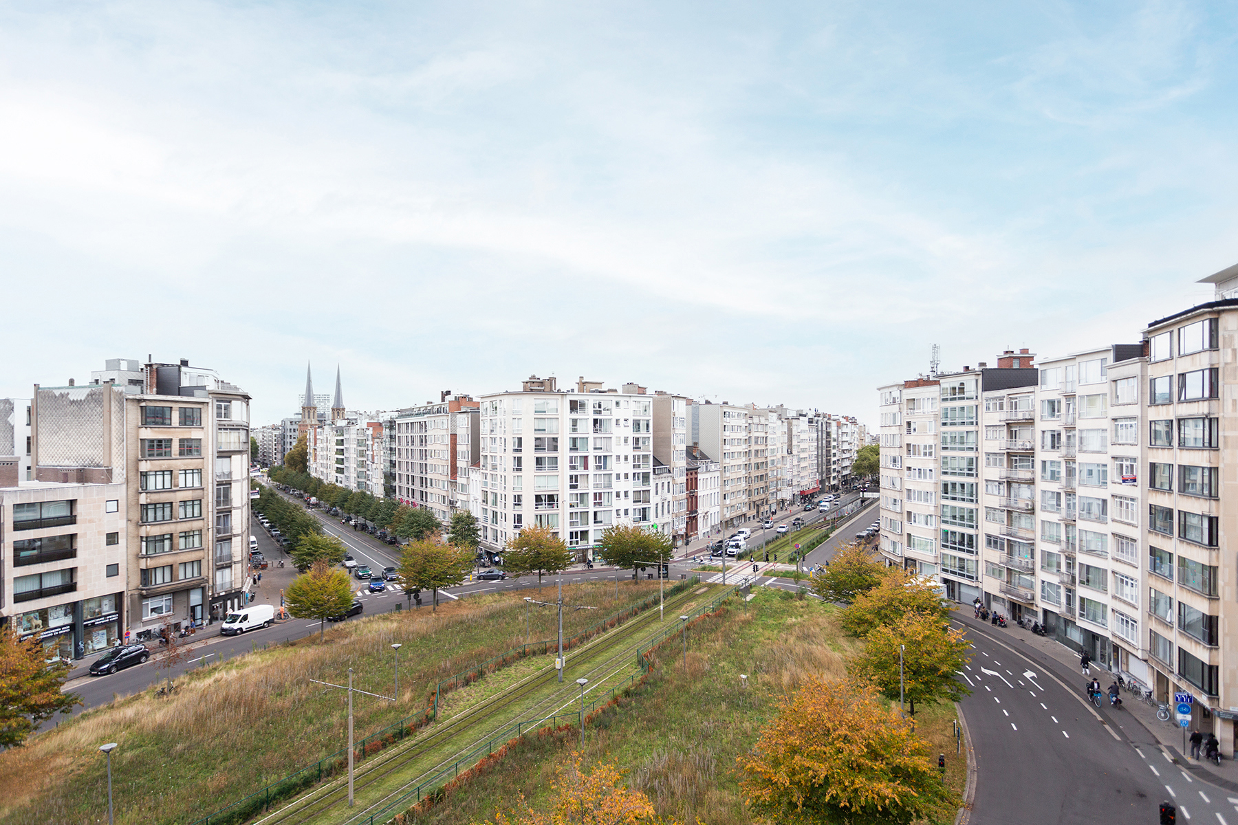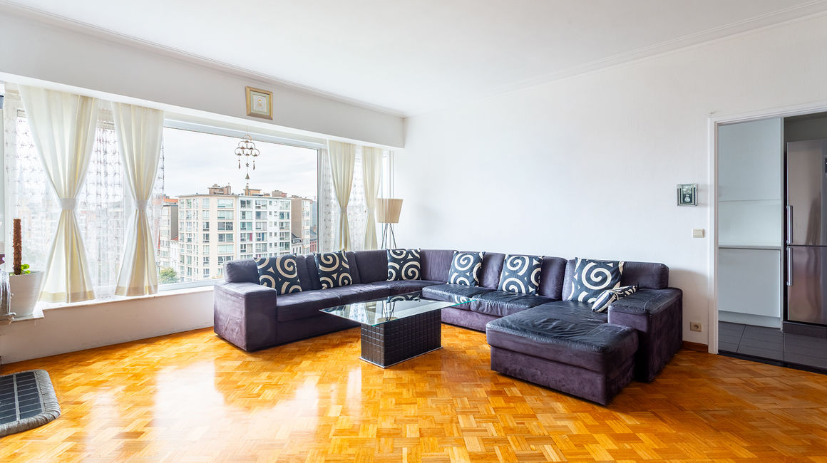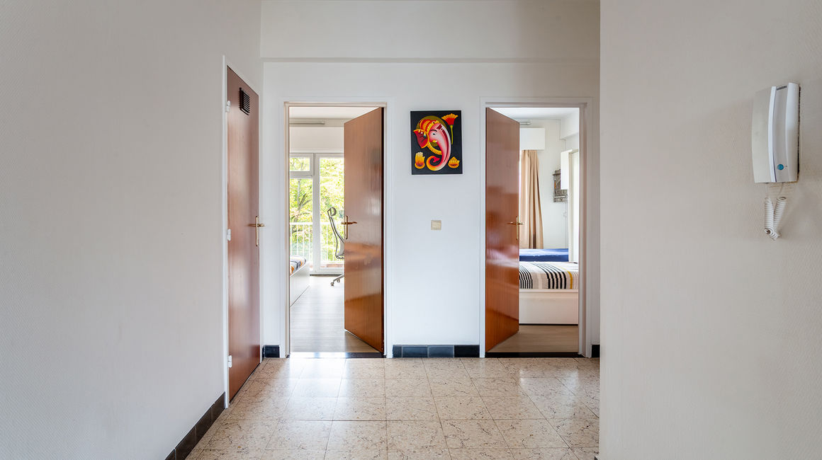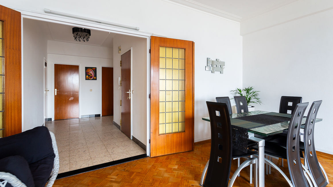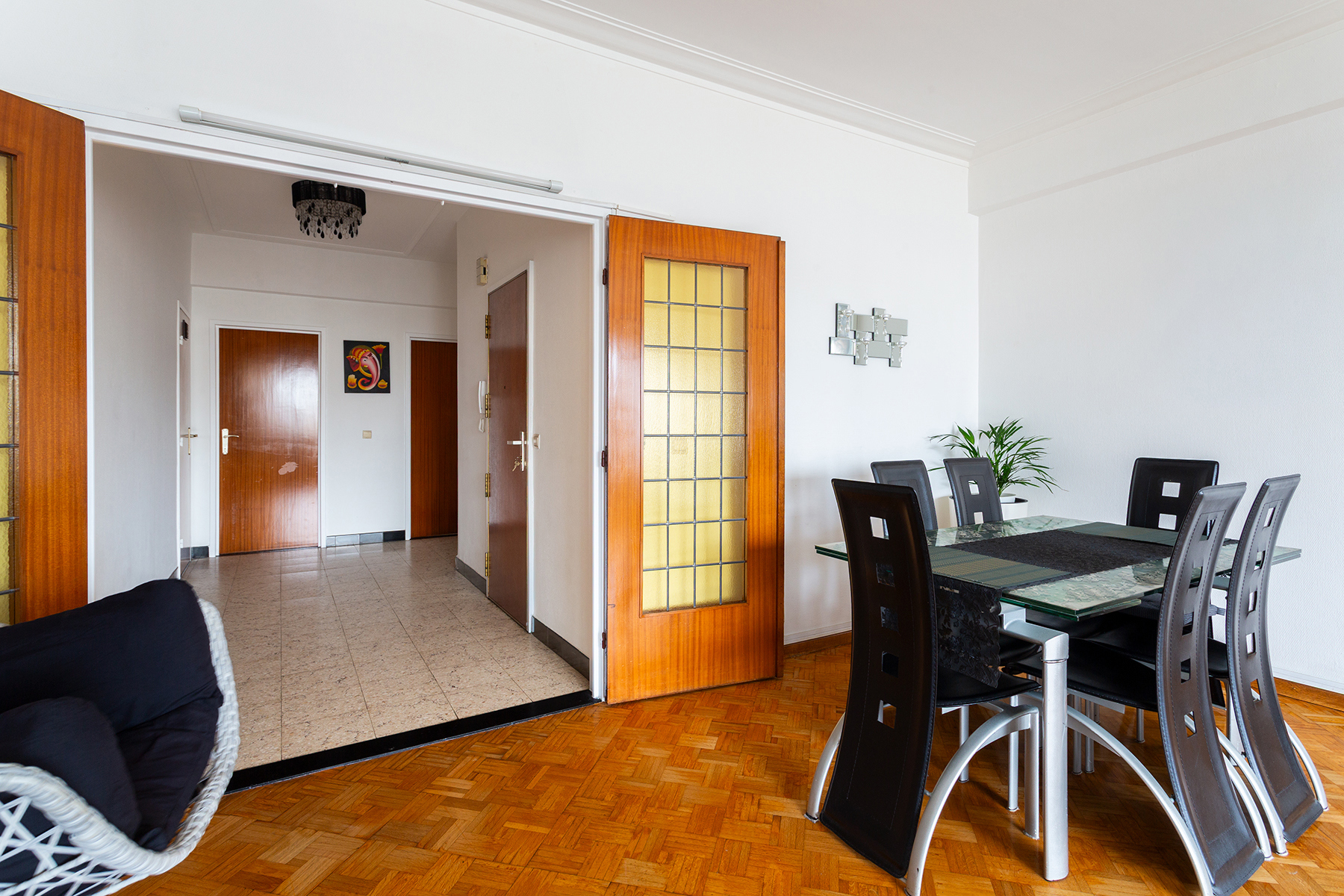 Het appartement biedt een prachtig vergezicht over het plein tegenover de Charlottalei. De ruime inkomhal ca. 8m² vormt het centrale punt van de woning en beschikt over een gastentoilet en vestiaire.