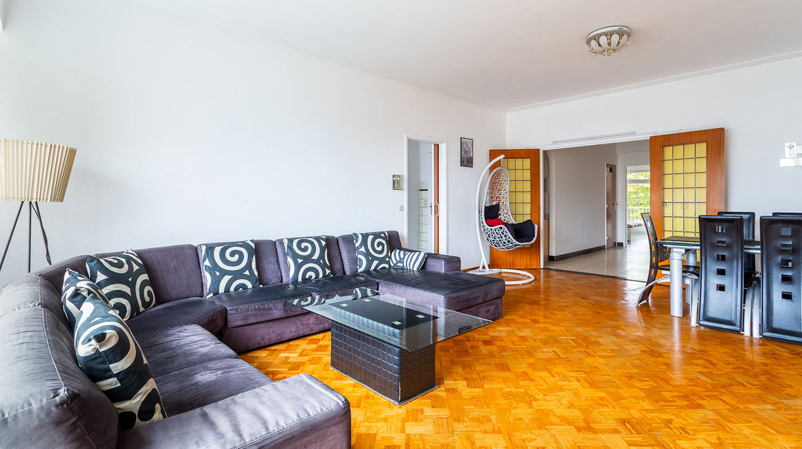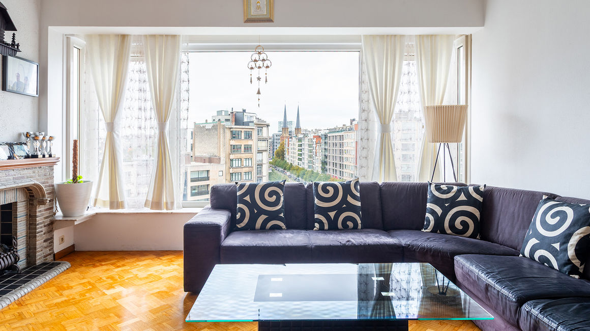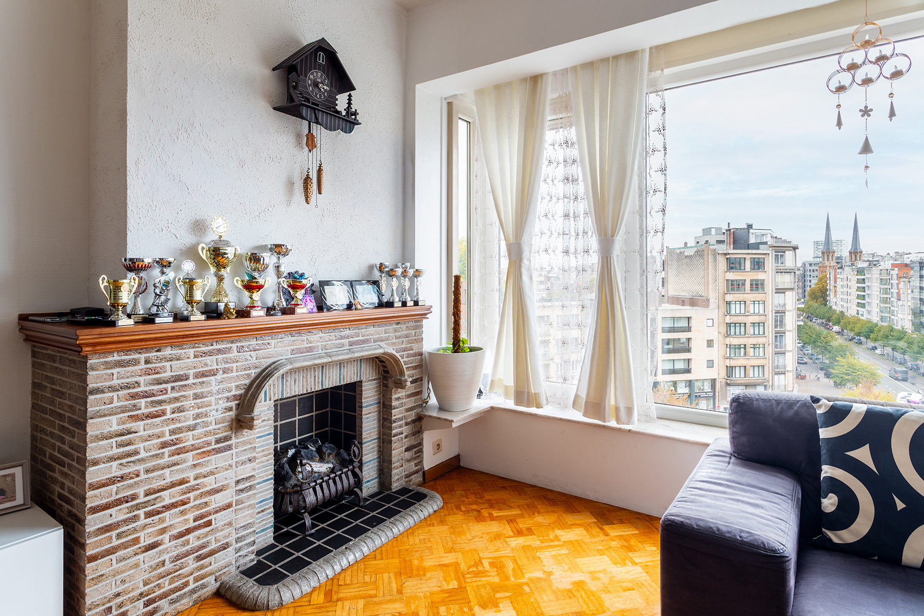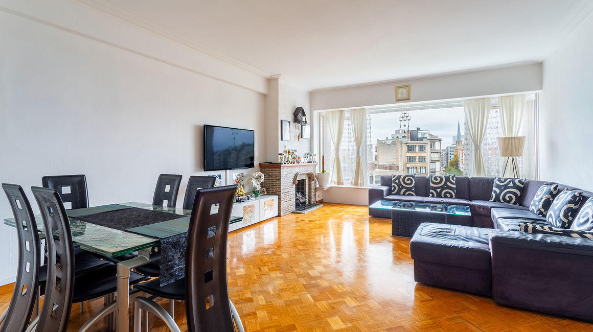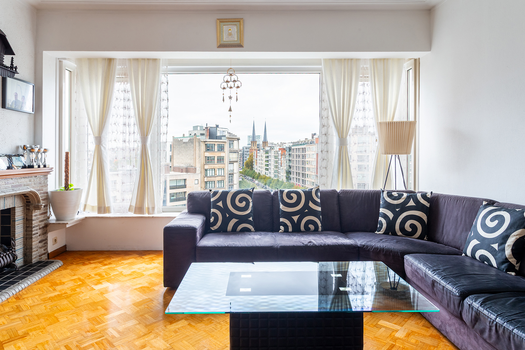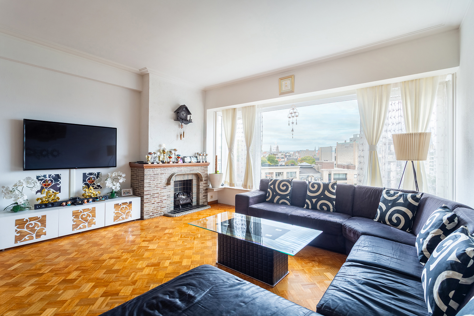 Het appartement biedt een prachtig vergezicht over het plein tegenover de Charlottalei. De ruime inkomhal ca. 8m² vormt het centrale punt van de woning en beschikt over een gastentoilet en vestiaire.
