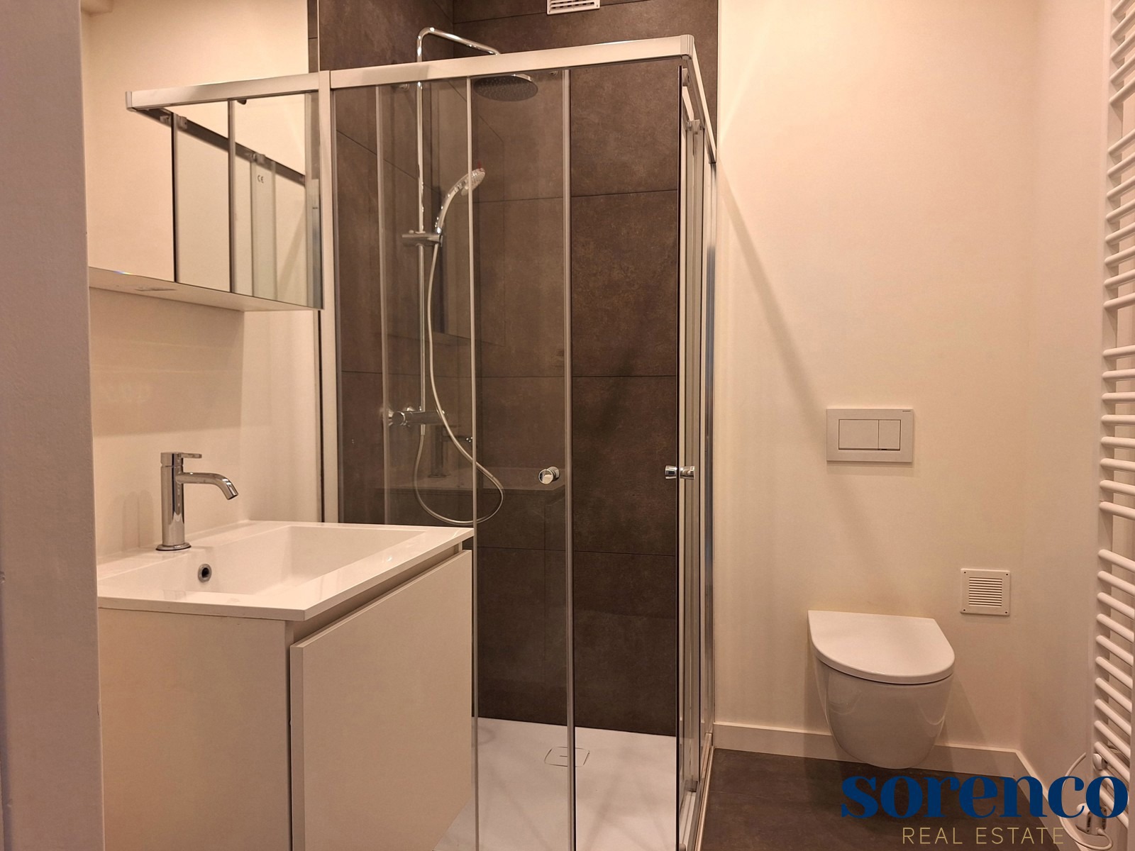 De INKOMHAL beschikt over een BERGING en biedt toegang tot de SLAAPKAMER met TERRAS, de BADKAMER is voorzien van douche, wastafel, wc en aansluiting voor wasmachine.