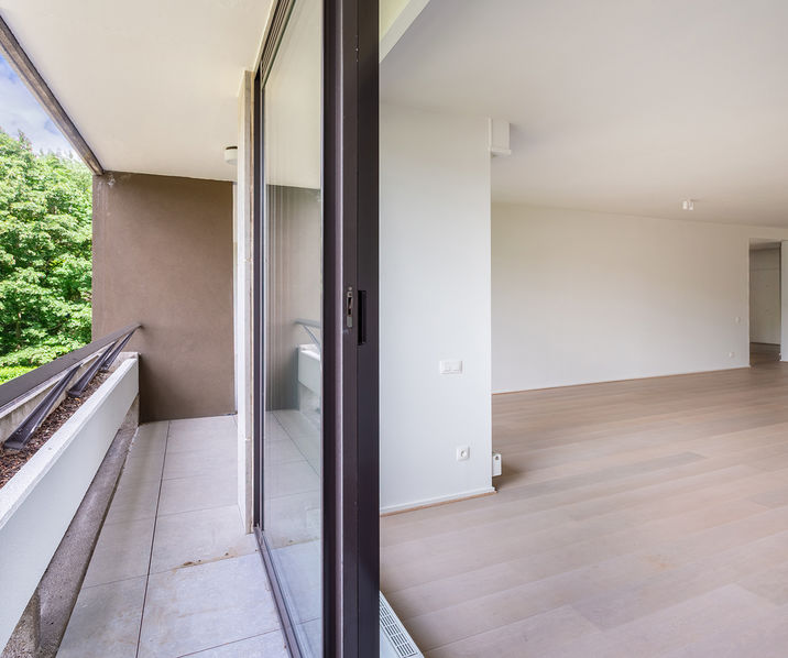 * Terras over de volledige breedte van het appartement. Toegankelijk via de leefruimte en de slaapkamers