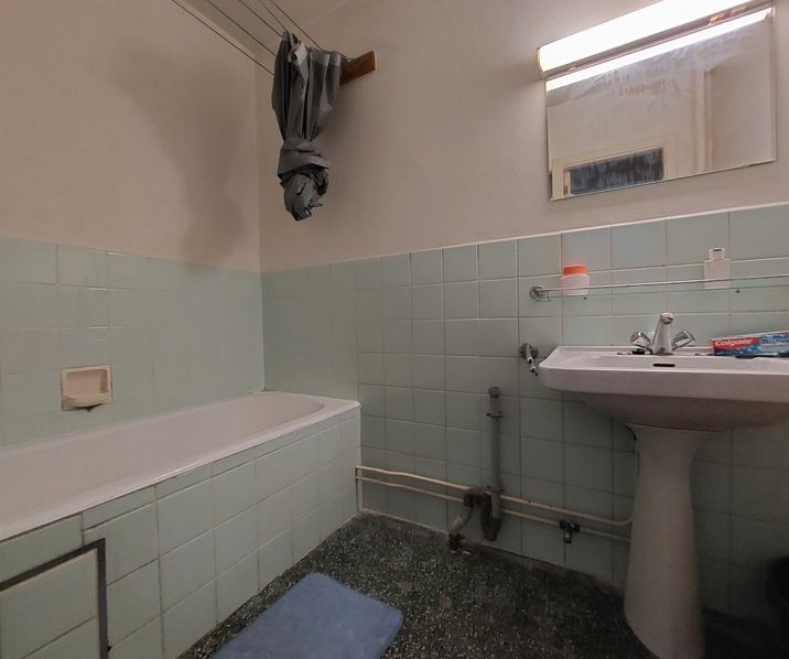 Inkomhal met ingemaakte bergkast, gezellige leefruimte op blokjesparket ( ca. 6m x 3m30), aparte keuken (ca. 1m60 x 5m50), badkamer met ligbad, lavabo en plaats voor wasmachine (ca. 1m50 x 2m20) , apart toilet en ruime slaapkamer (ca. 4m x 3m) . Goed bereikbaar via openbaar vervoer, nabij belangrijke in-en uitvalswegen, winkels en de Antwerpse ring.