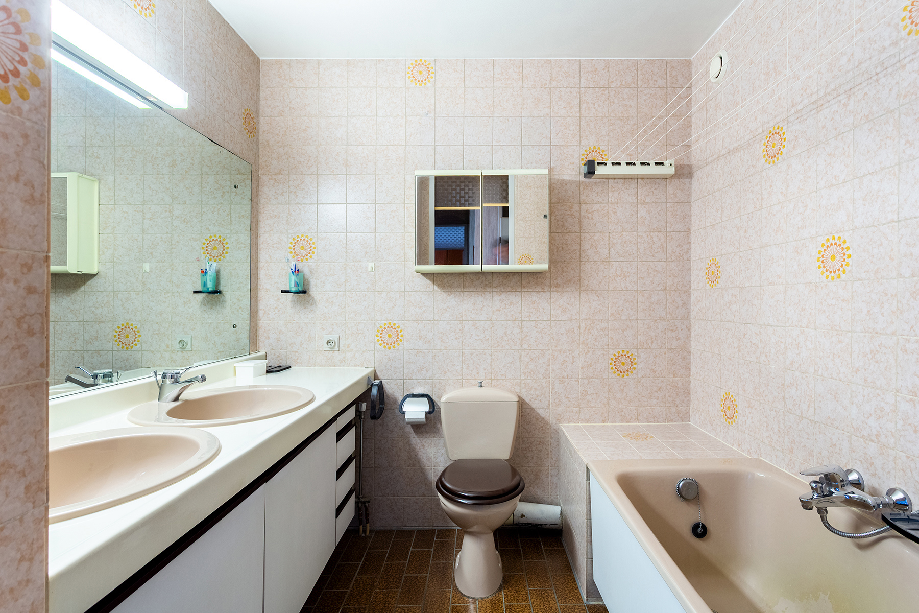 Verder heeft u een apart gastentoilet en de ingerichte BADKAMER ca. 6m² met dubbele wastafel, WC en een ligbad met douchemogelijkheid.