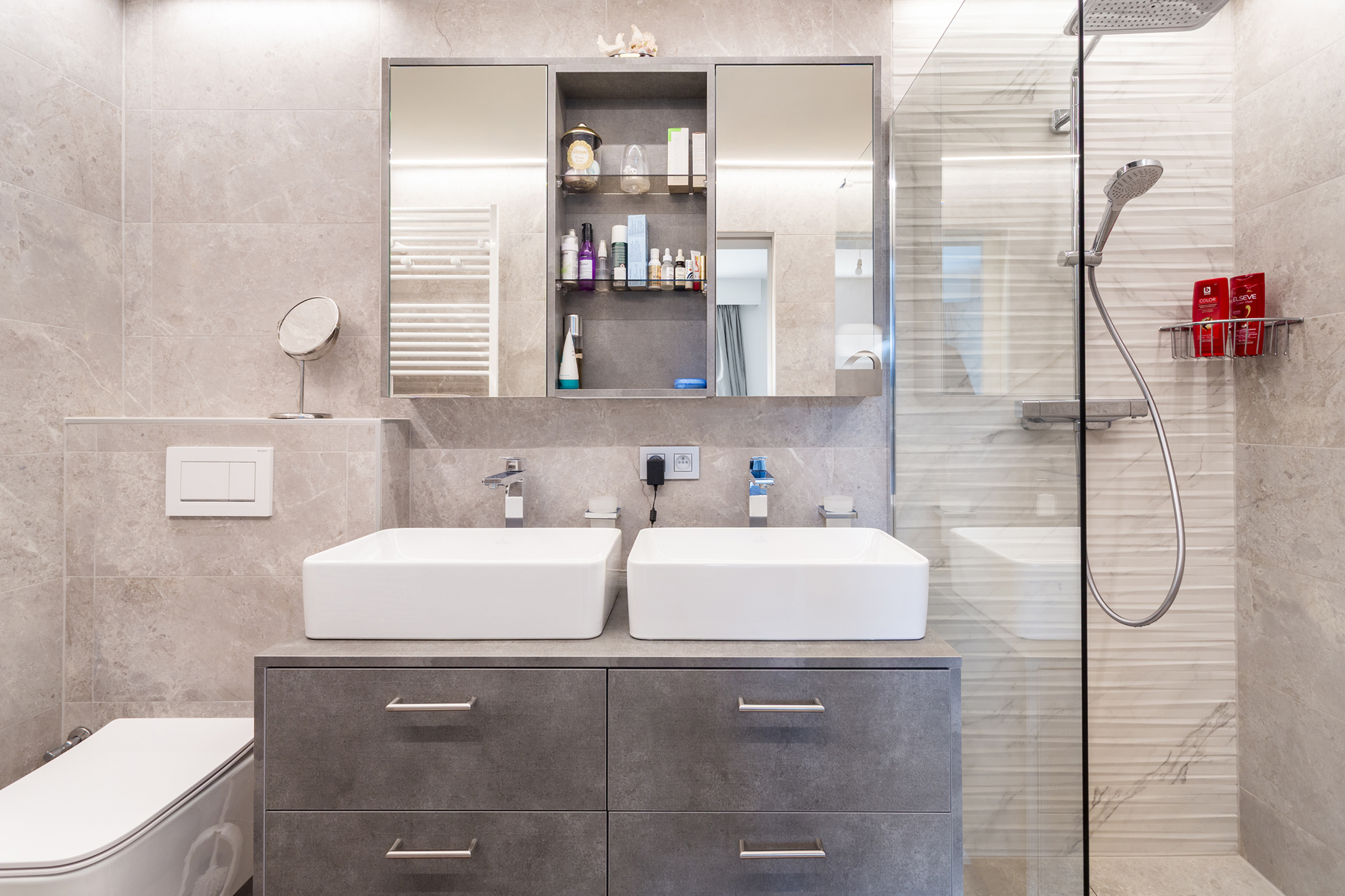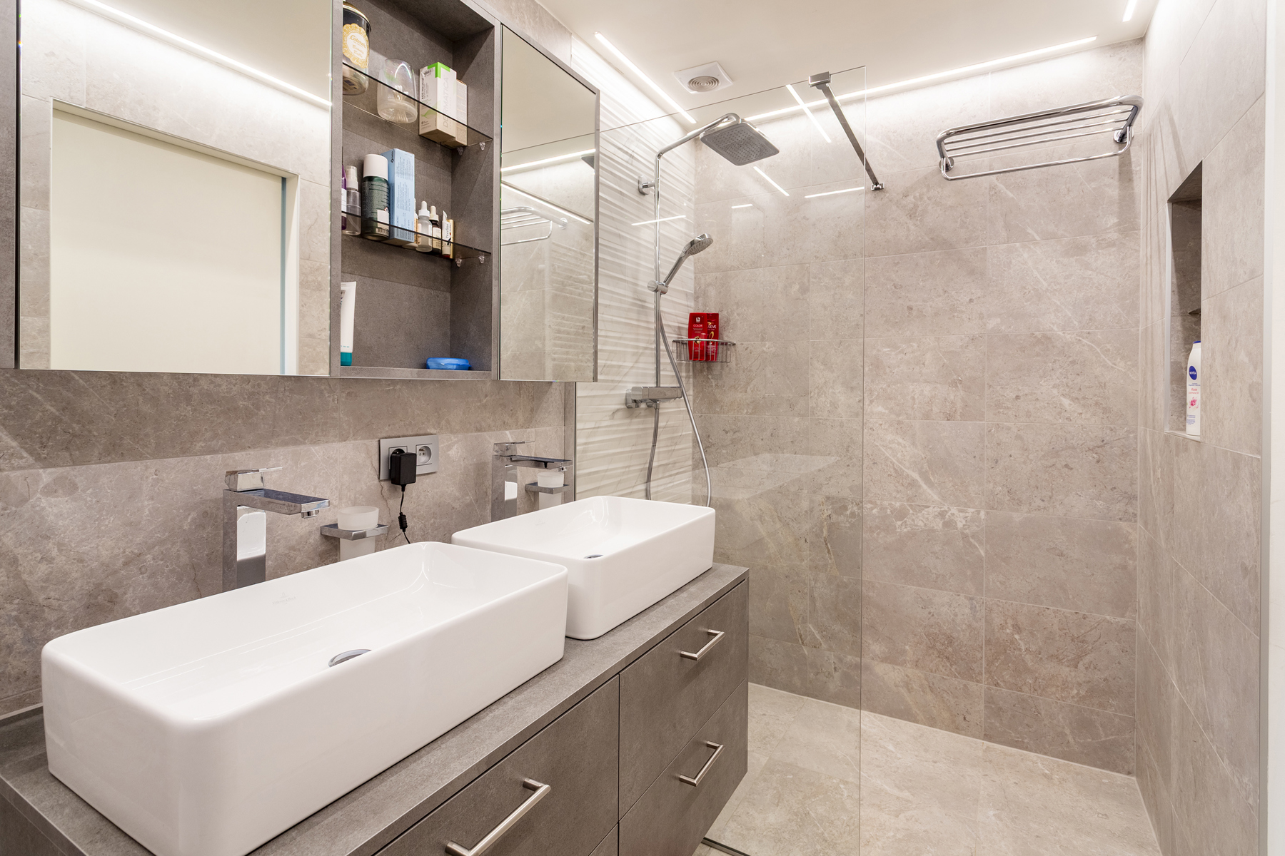 * Twee totaal nieuwe badkamers met inloopdouche