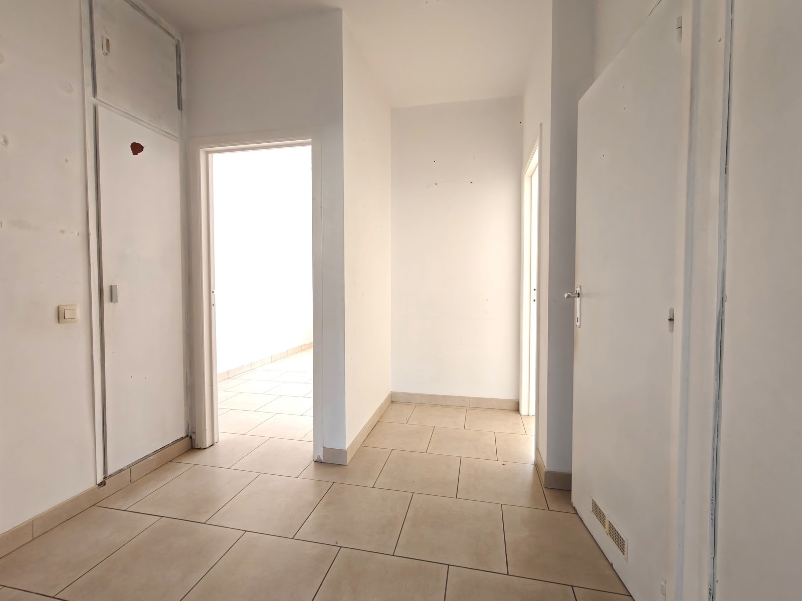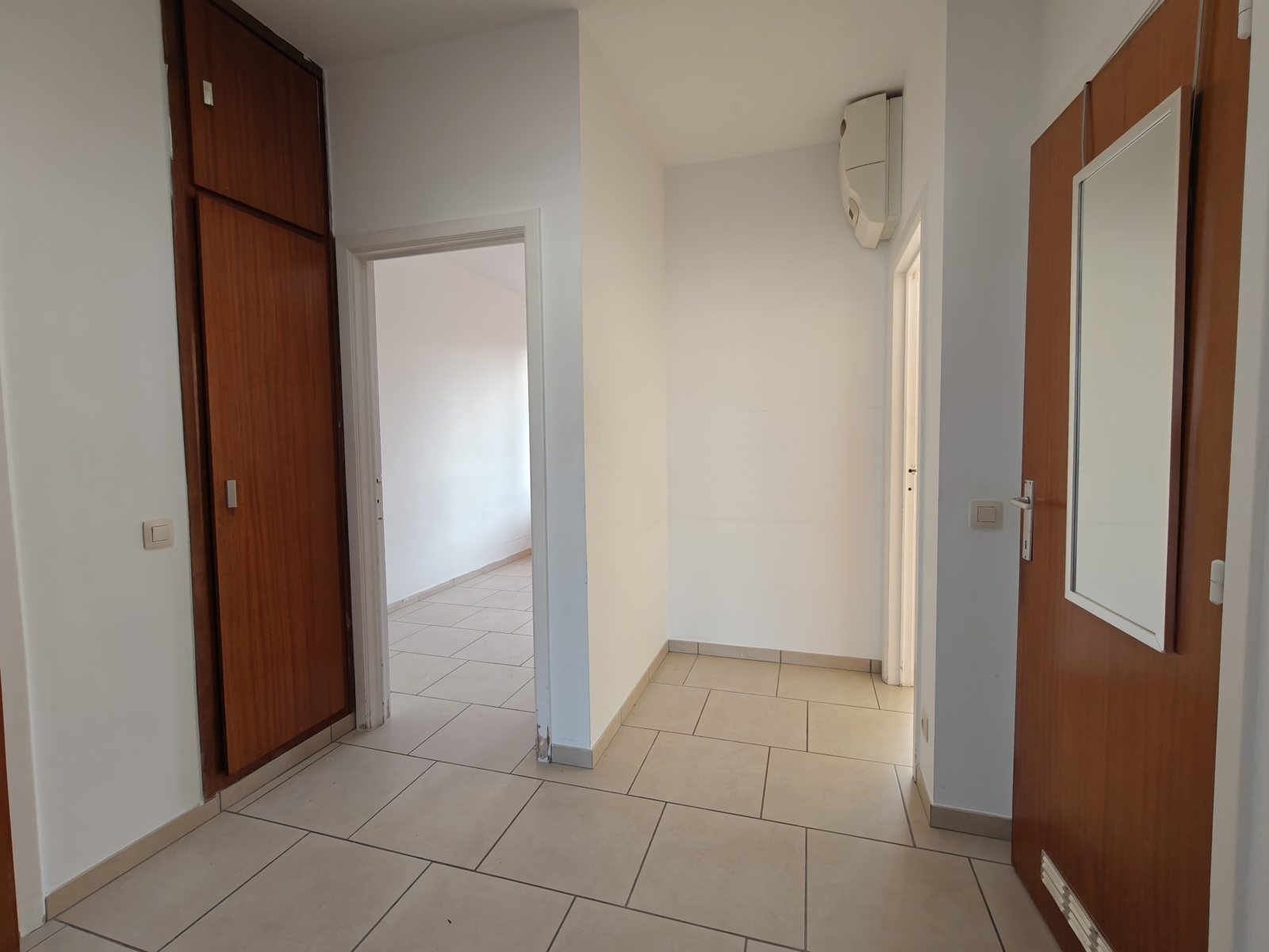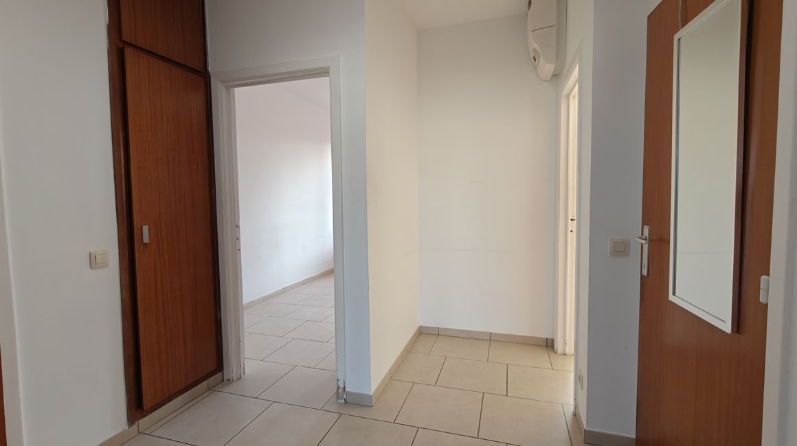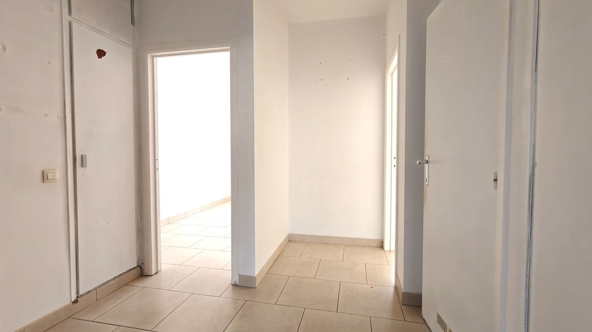 Via de INKOMHAL met ingebouwde kasten krijgt u toegang tot de verschillende ruimtes van het lichtrijke en praktisch ingedeelde appartement.