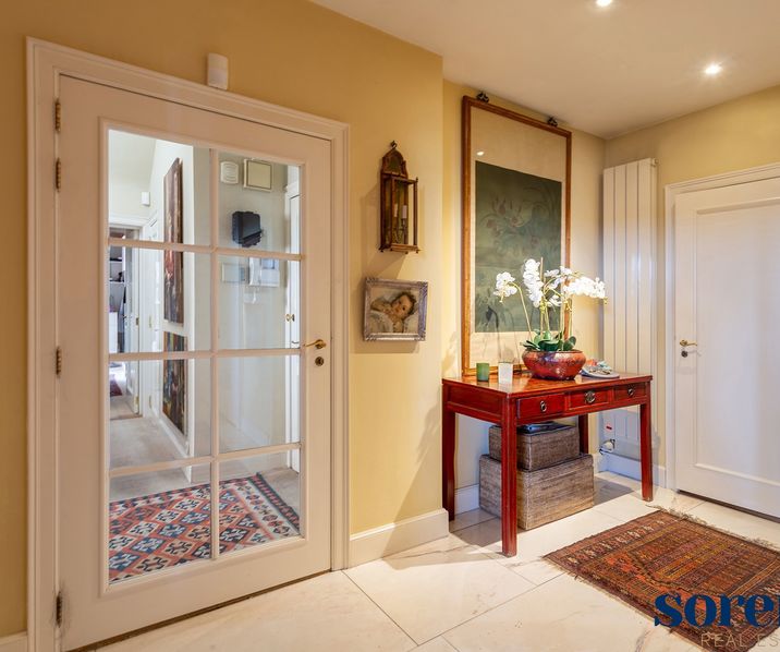 Verder is er een gastentoilet en een ingemaakte vestiairekast. De volledig uitgeruste KEUKEN van ca. 30m² is voorzien van alle moderne comfort met opbergkasten en toestellen waaronder een gasvuur met dampkap, afwasmachine, oven en een dubbele koelkast met diepvries. De keuken geeft bovendien uit op een gezellig TERRASJE van ca. 6m². Vanuit de NACHTHAL, die is ingericht als een ruime INLOOPDRESSING, bereikt u zowel de eerste SLAAPKAMER van ca. 17m² als de MASTERBEDROOM van ca. 24m². De BADKAMER van ca. 16m² is luxueus ingericht met een ruime inloopdouche, dubbele wastafel, ligbad en sauna,