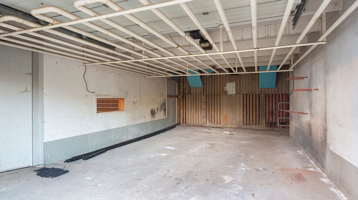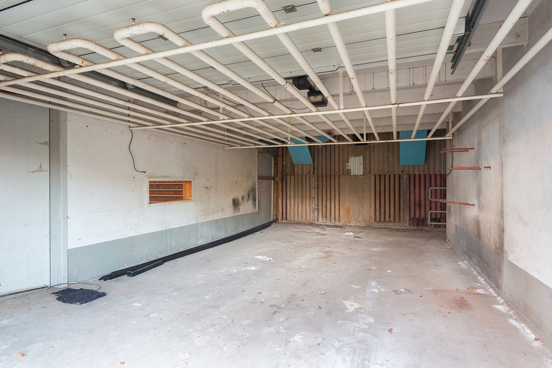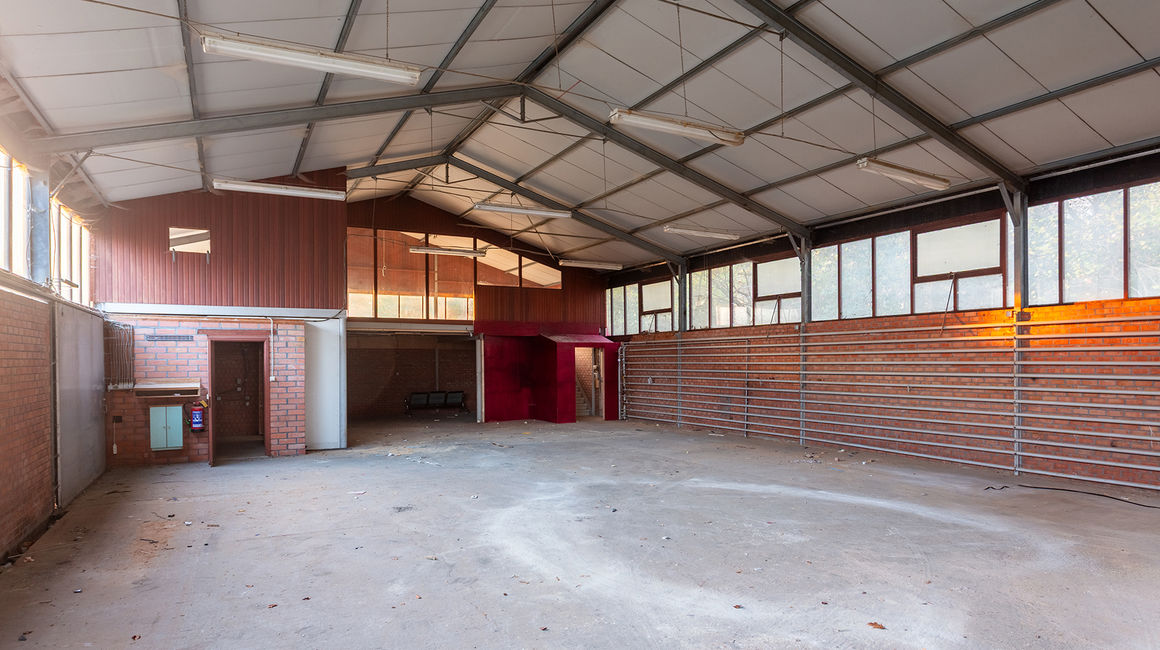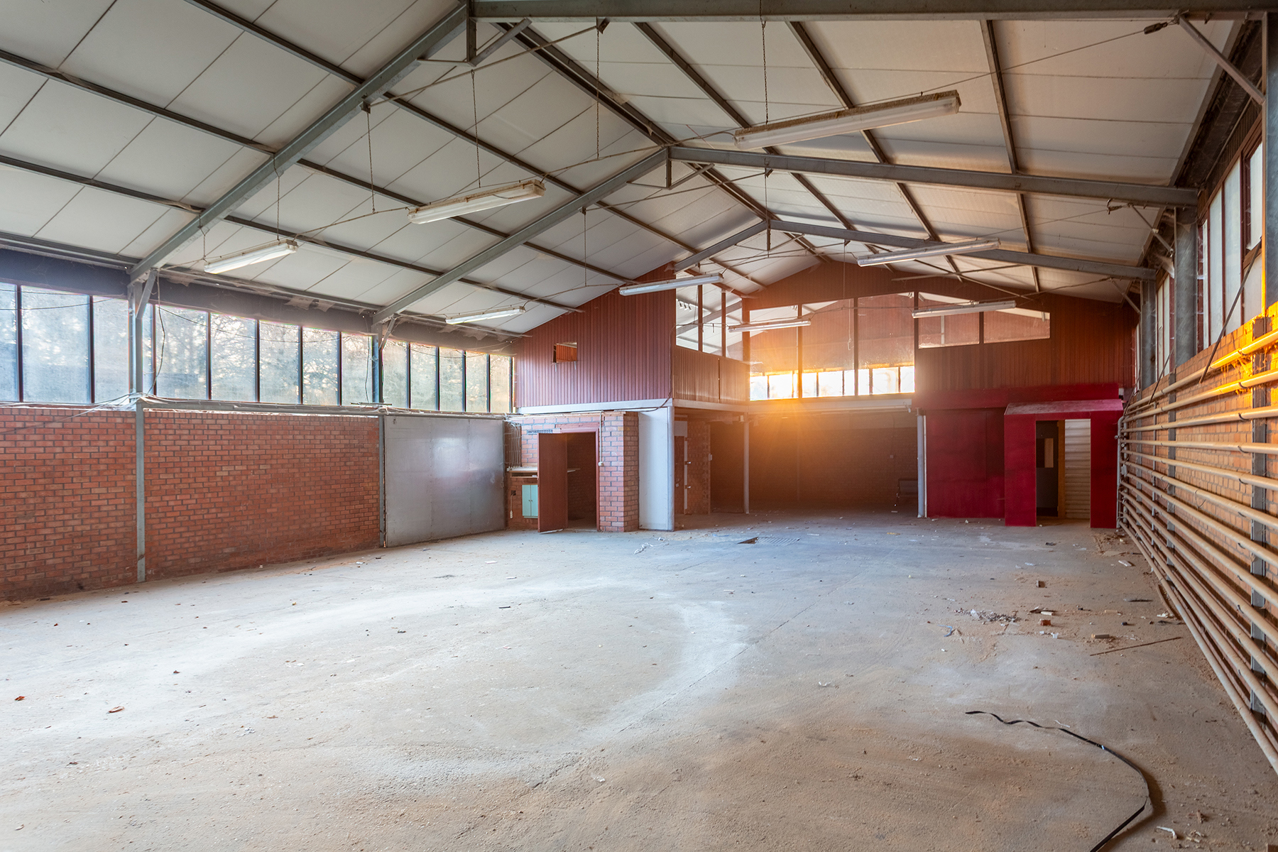 Magazijn met extra niveau voor bureau en en suite ruime garage, allen met automatische poorten.