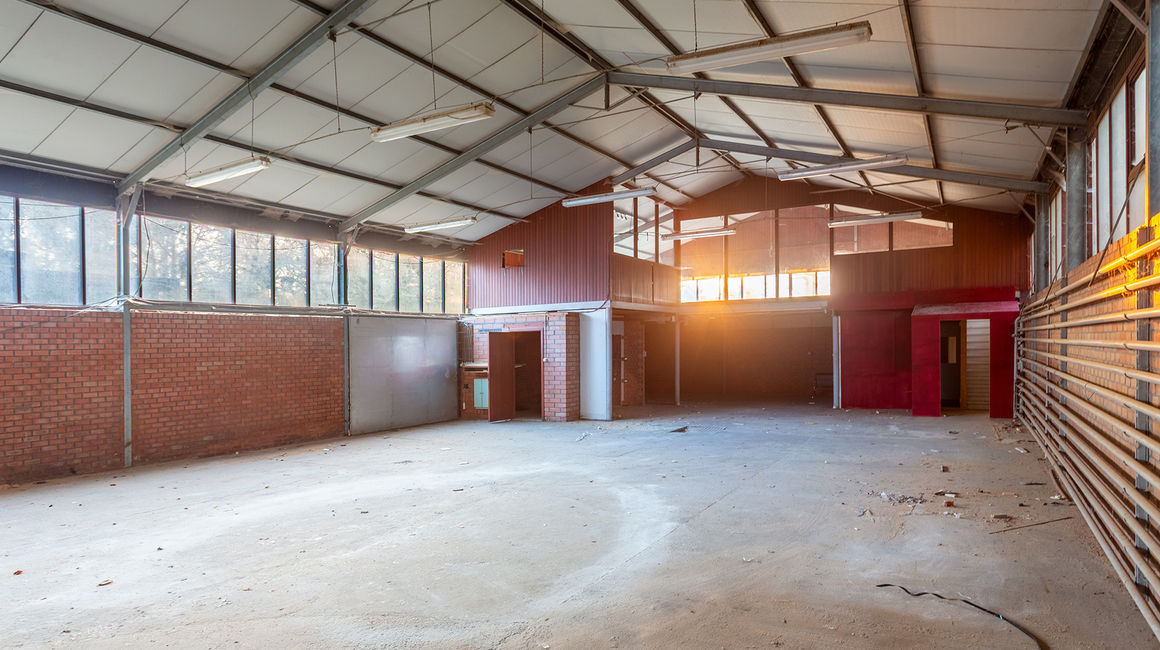 Magazijn met extra niveau voor bureau en en suite ruime garage, allen met automatische poorten.