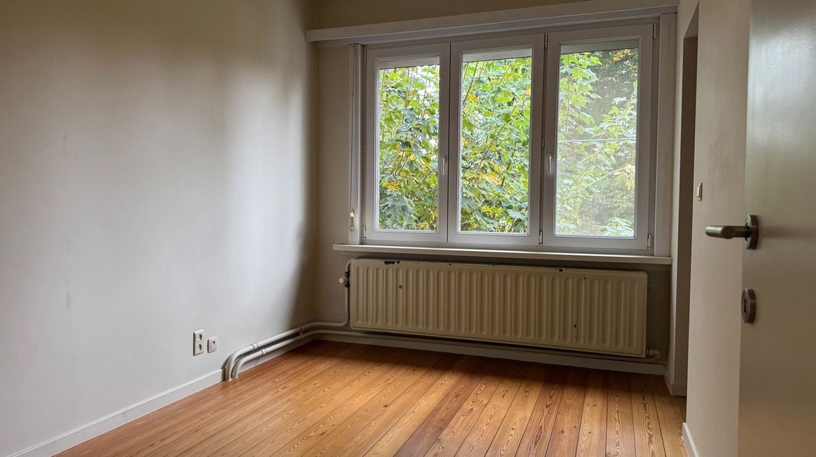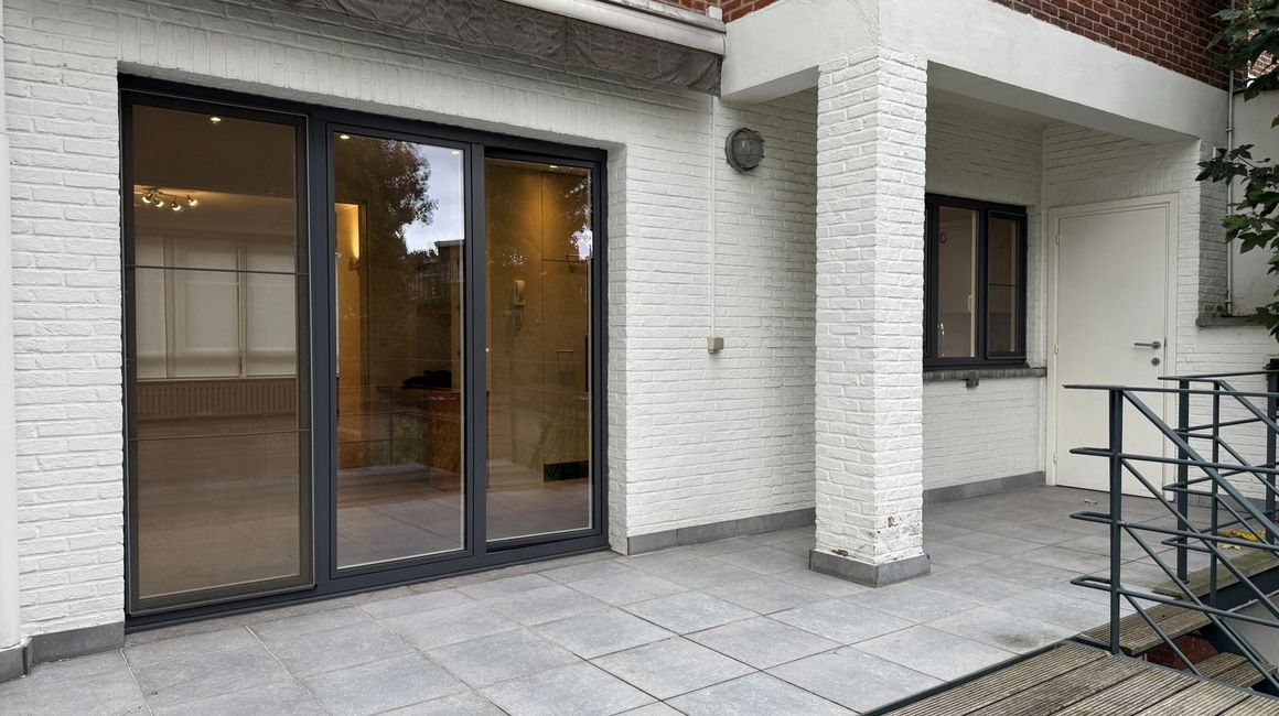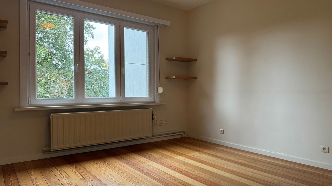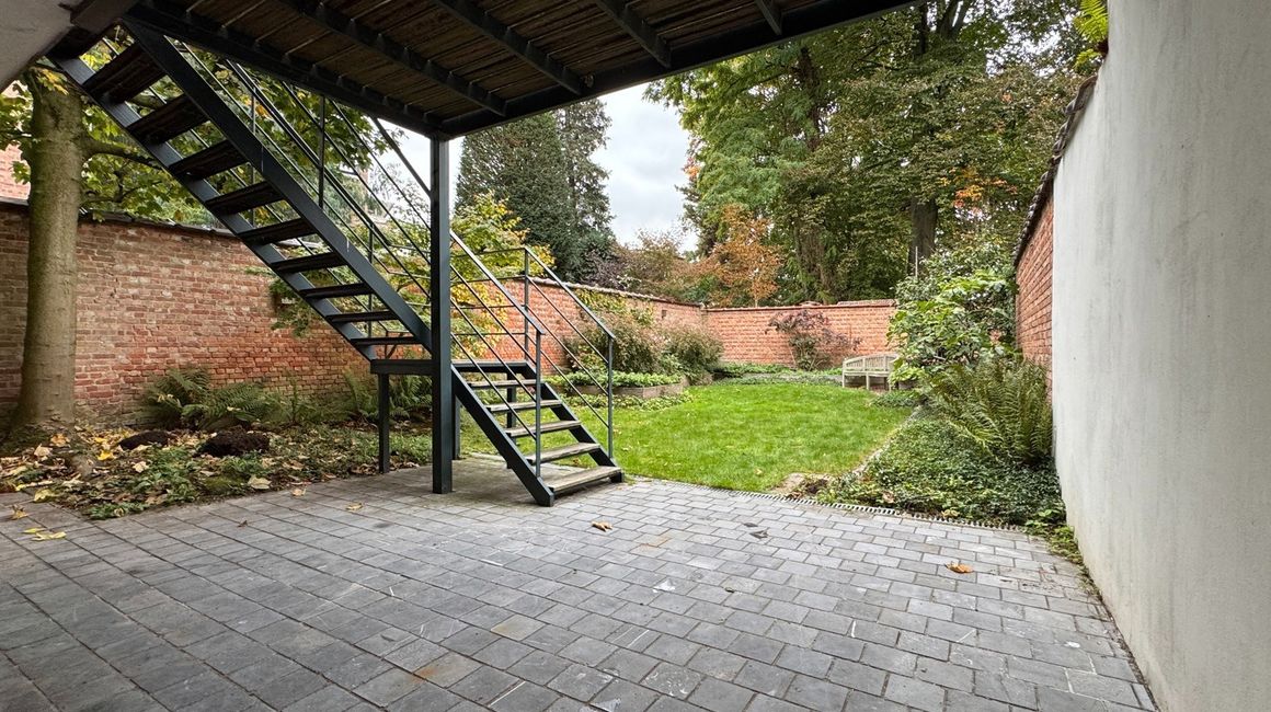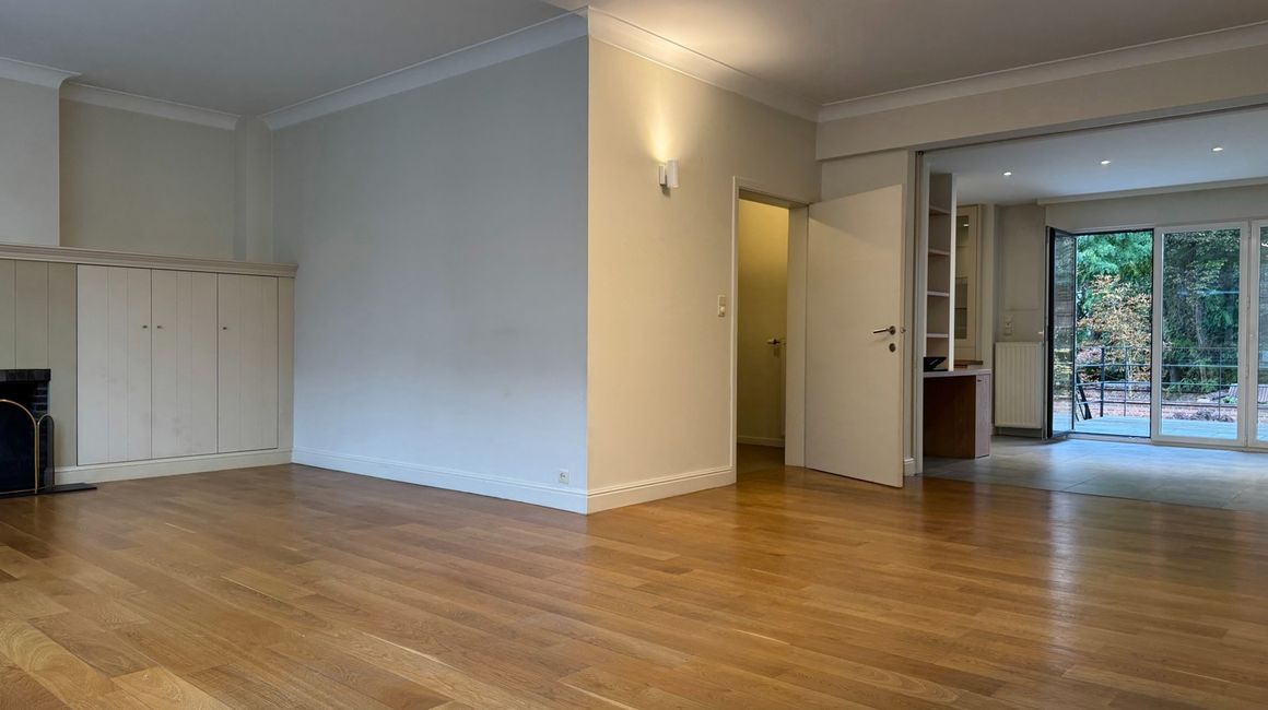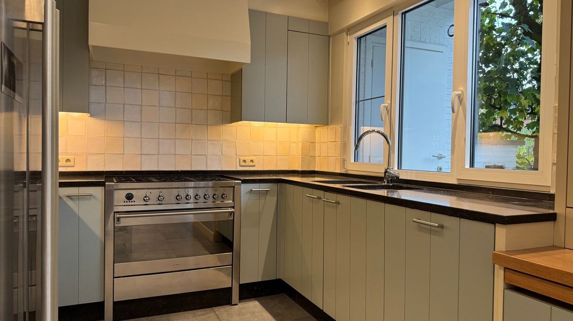 De eerste verdieping heeft u de lichte, L-vormige leefruimte ca. 40m² op parket, met een halfopen, volledig ingerichte keuken ca. 23m² voorzien van opbergkasten en toestellen gelegen aan de tuinkant. Dankzij de grote ramen geniet u van overvloedig natuurlijk licht en een warme, uitnodigende sfeer. Vanuit de leefruimte heeft u toegang tot een ruim terras met uitzicht op de groene tuin.