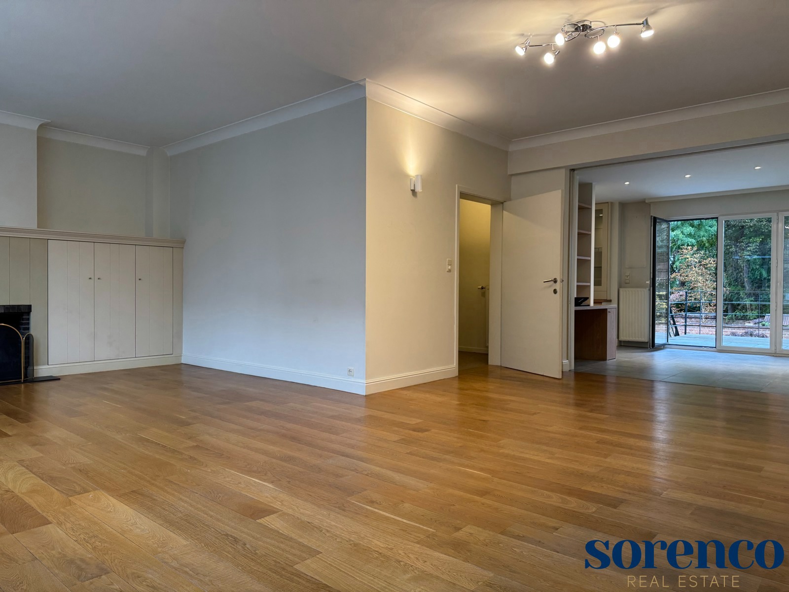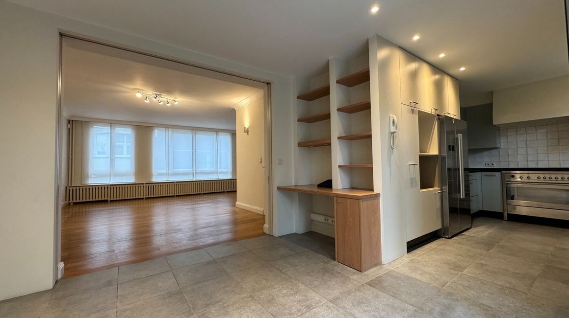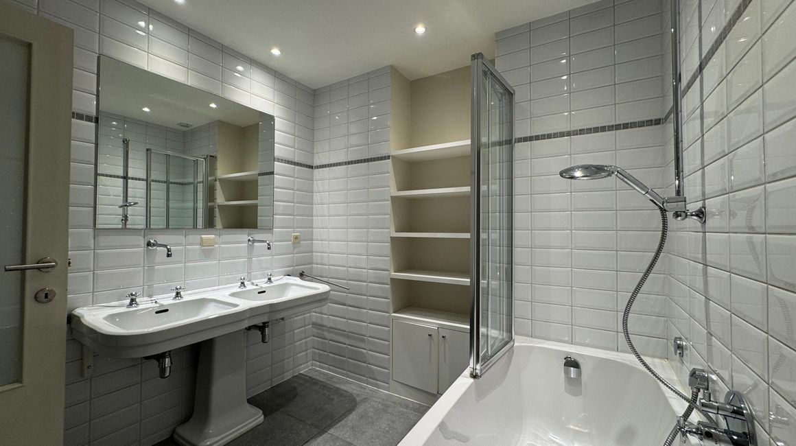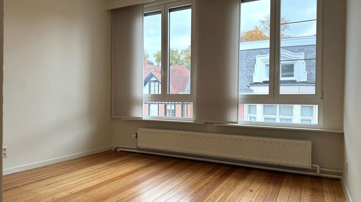 De eerste verdieping heeft u de lichte, L-vormige leefruimte ca. 40m² op parket, met een halfopen, volledig ingerichte keuken ca. 23m² voorzien van opbergkasten en toestellen gelegen aan de tuinkant. Dankzij de grote ramen geniet u van overvloedig natuurlijk licht en een warme, uitnodigende sfeer. Vanuit de leefruimte heeft u toegang tot een ruim terras met uitzicht op de groene tuin.