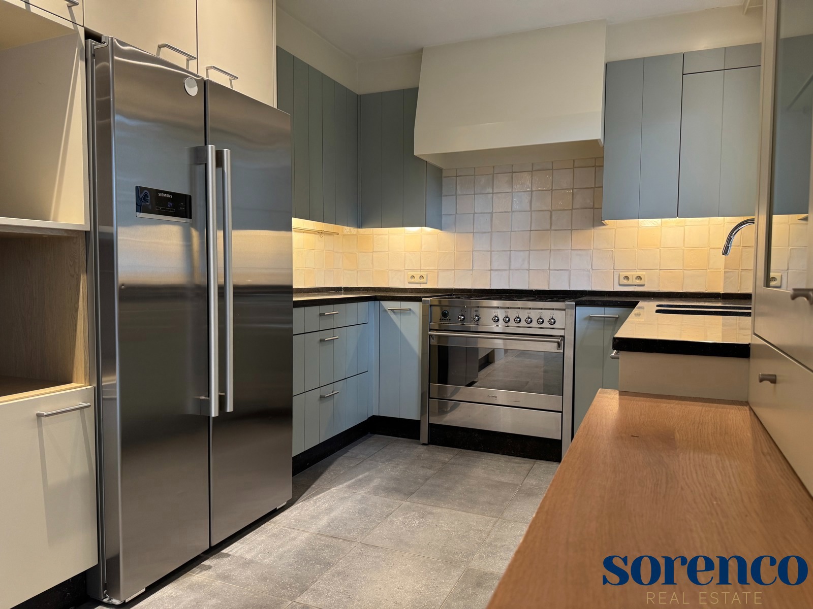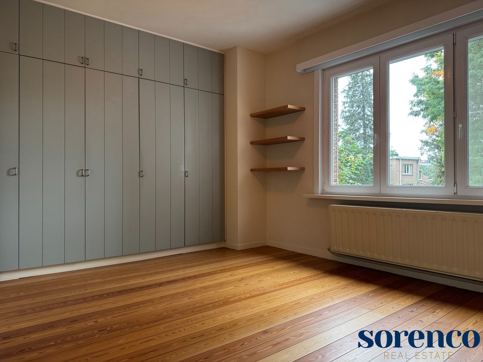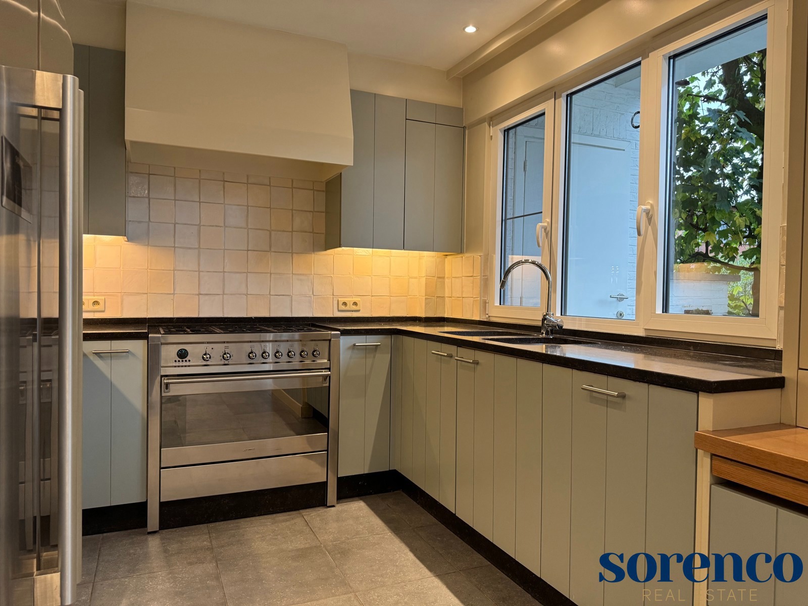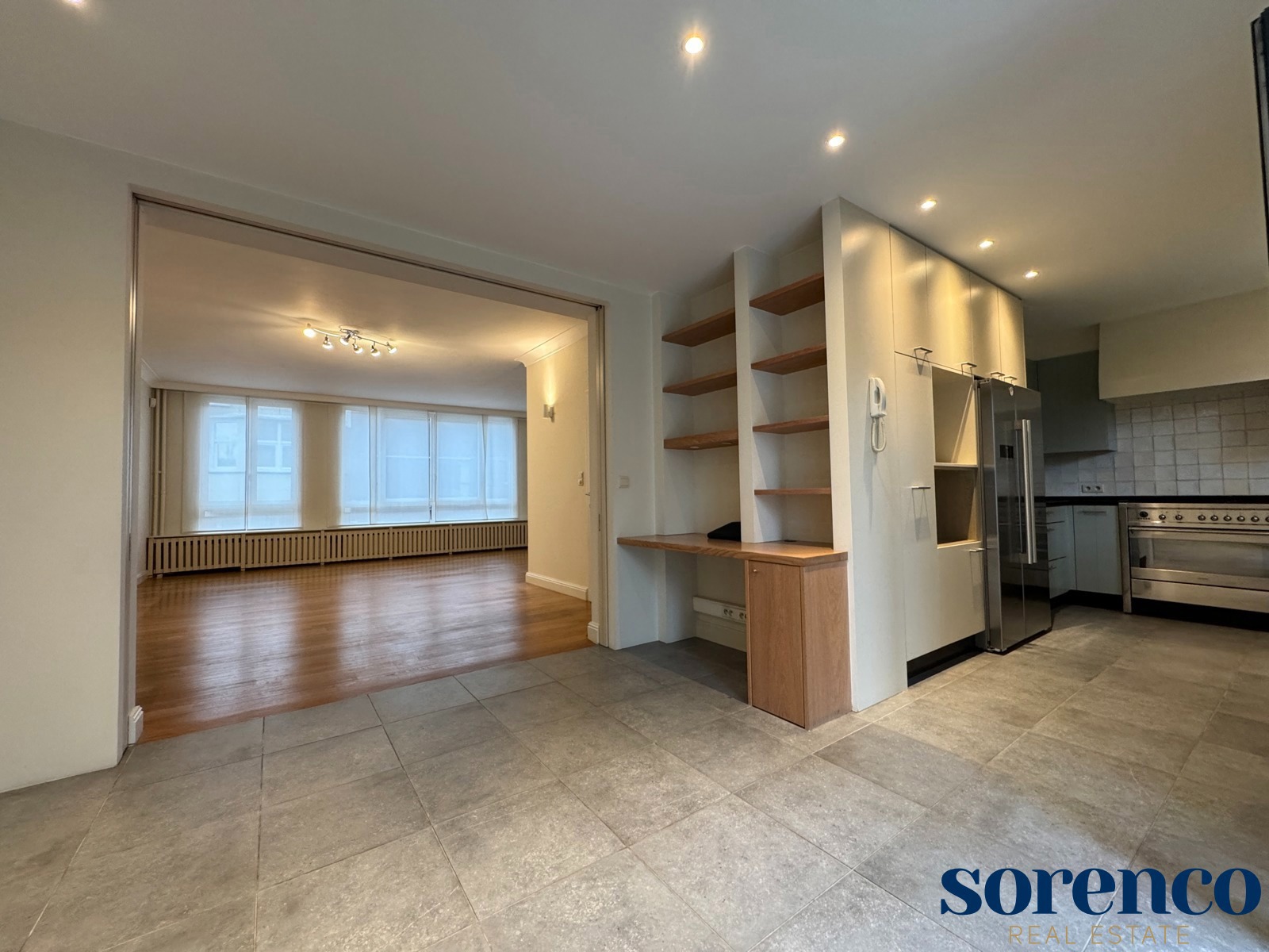 De eerste verdieping heeft u de lichte, L-vormige leefruimte ca. 40m² op parket, met een halfopen, volledig ingerichte keuken ca. 23m² voorzien van opbergkasten en toestellen gelegen aan de tuinkant. Dankzij de grote ramen geniet u van overvloedig natuurlijk licht en een warme, uitnodigende sfeer. Vanuit de leefruimte heeft u toegang tot een ruim terras met uitzicht op de groene tuin.