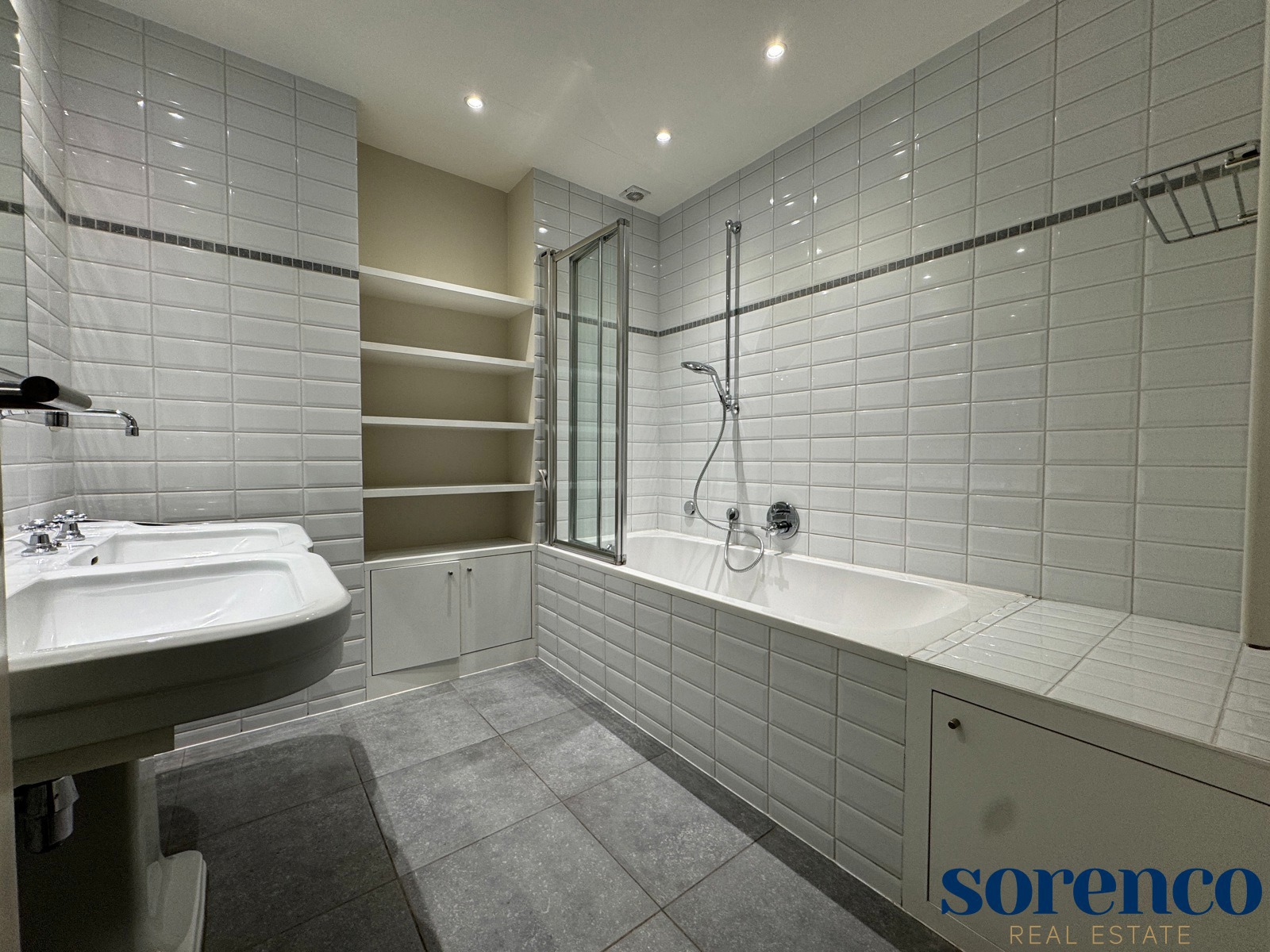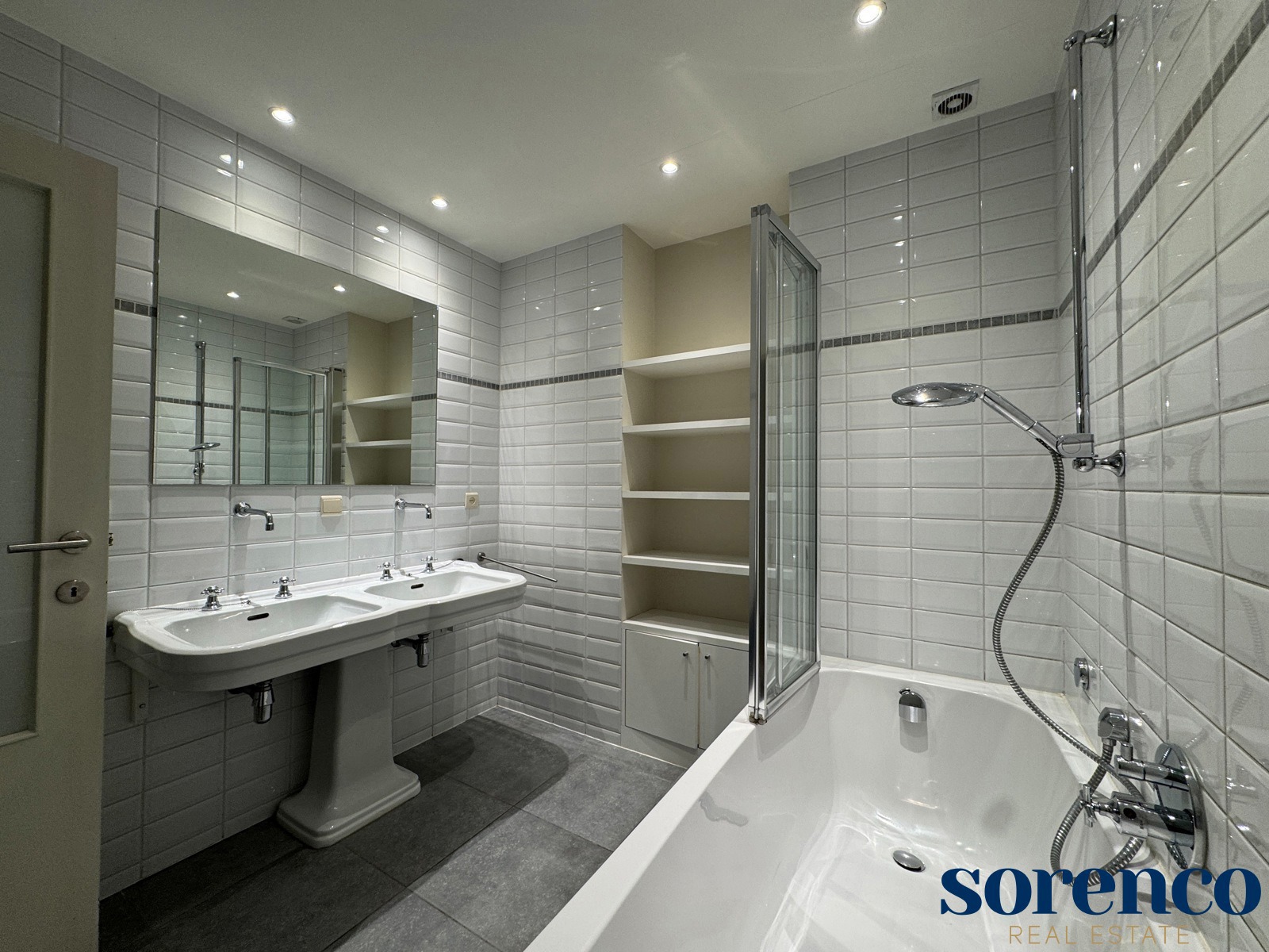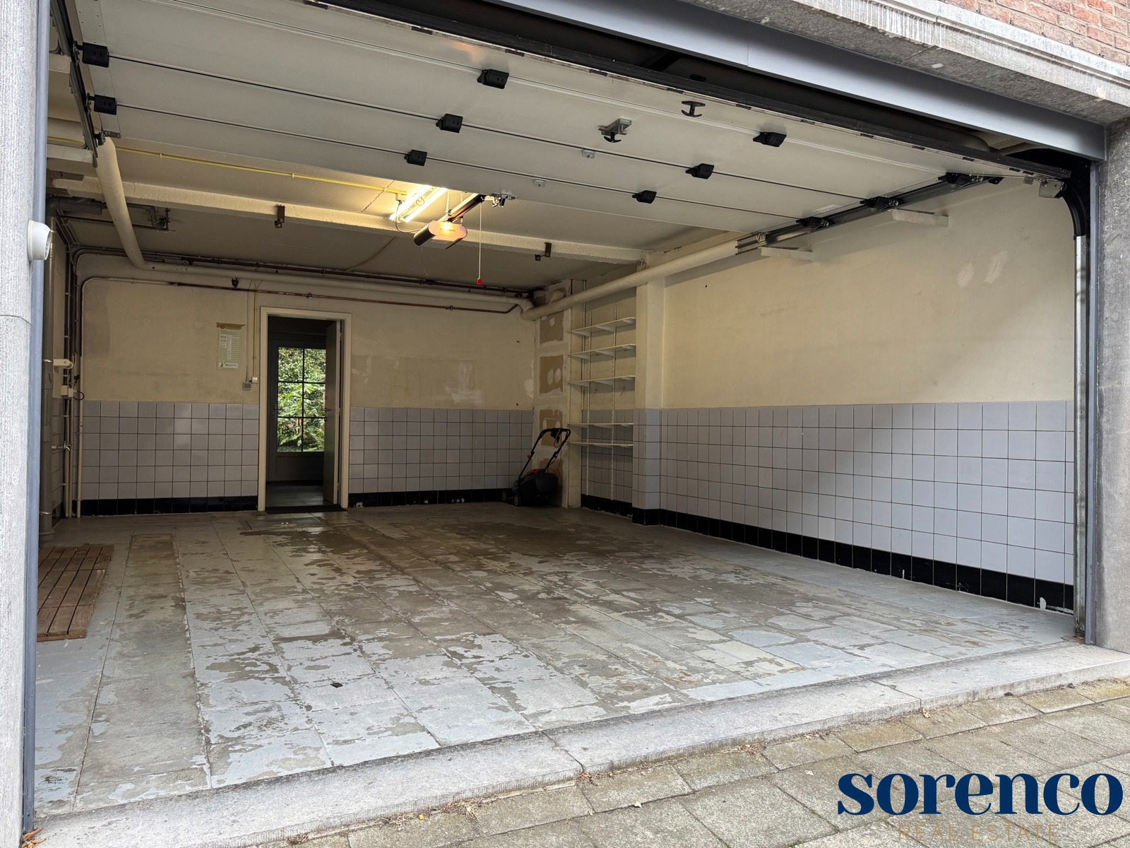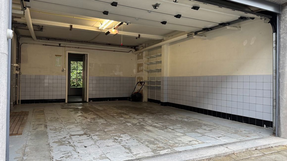 Op het gelijkvloers vindt u een inpandige garage ca. 32m² met aansluitende wasruimte ca. 5m², een ruime kamer of bureau en een praktische doucheruimte ca. 5m².