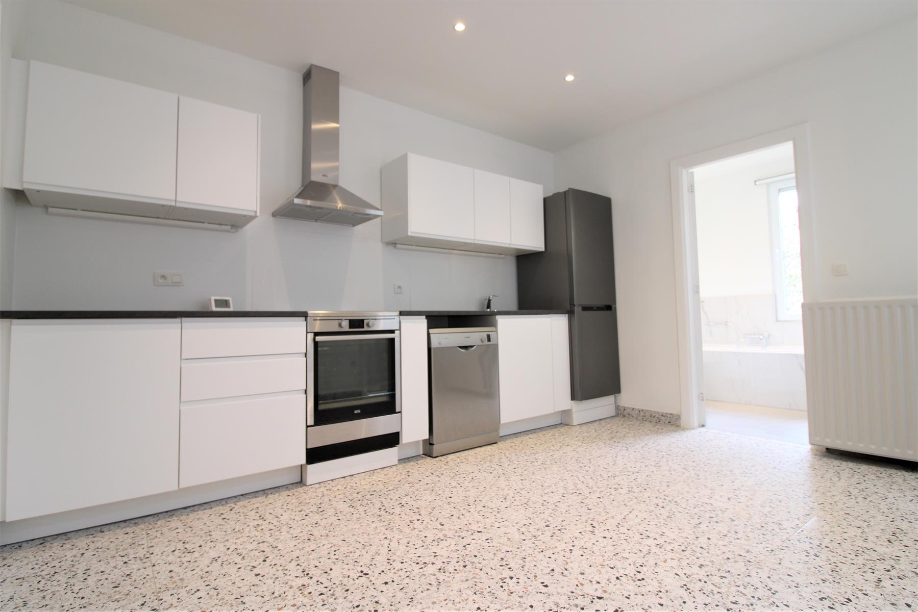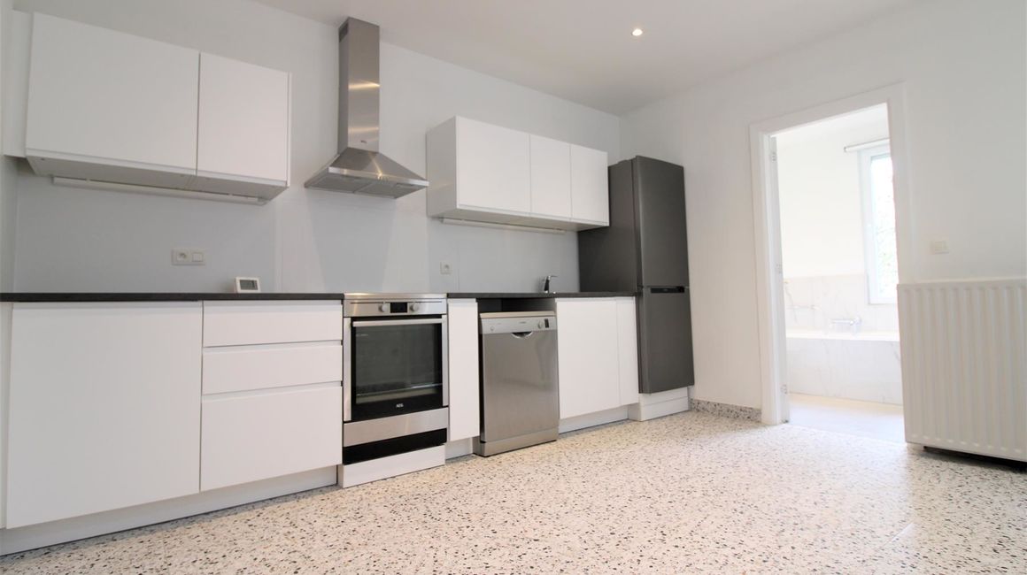 De ingerichte, lichte en recent gerenoveerde KEUKEN (ca. 3,4m x 4,2m), is voorzien van opbergkasten en toestellen; inductie kookfornuis, oven, dampkap, koelkast met diepvriezer en vaatwasser.