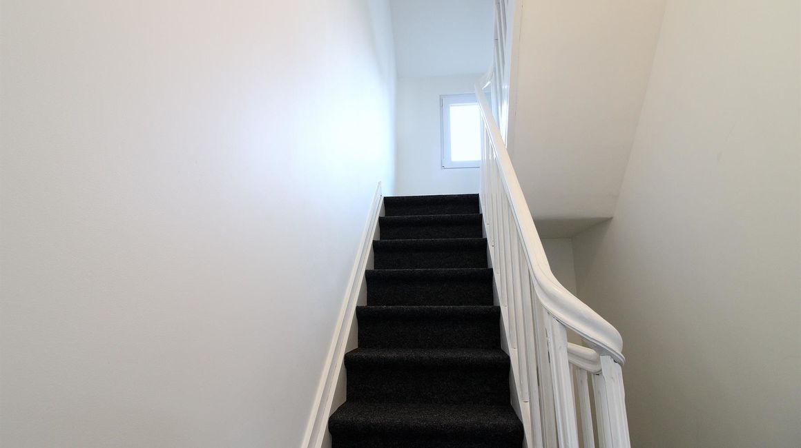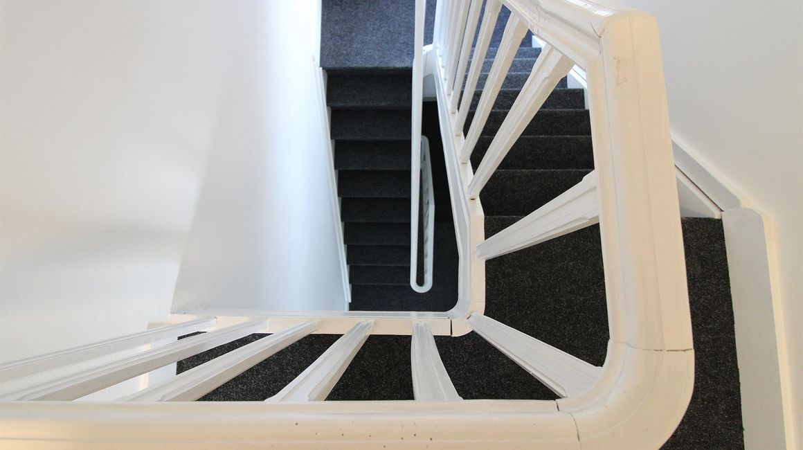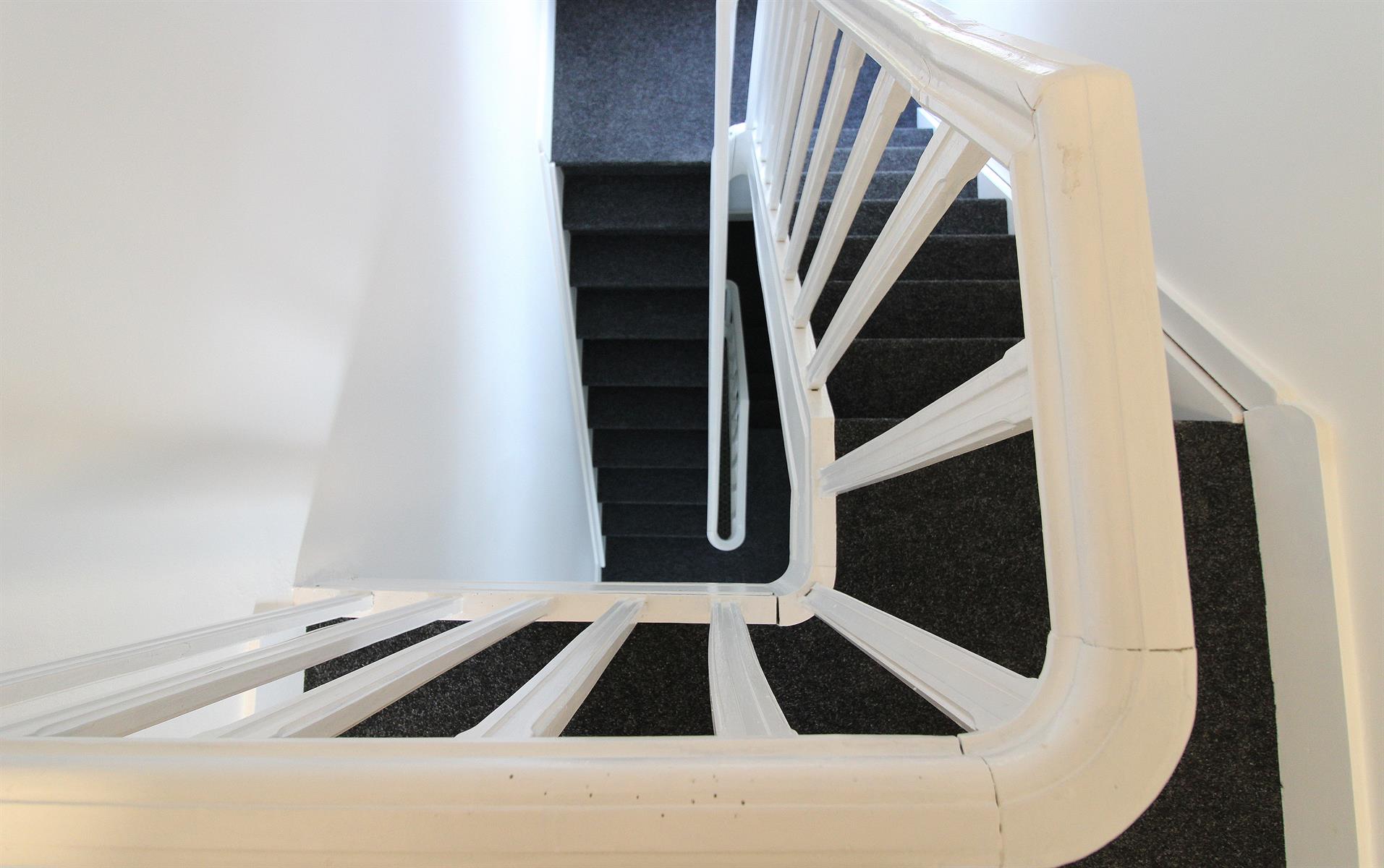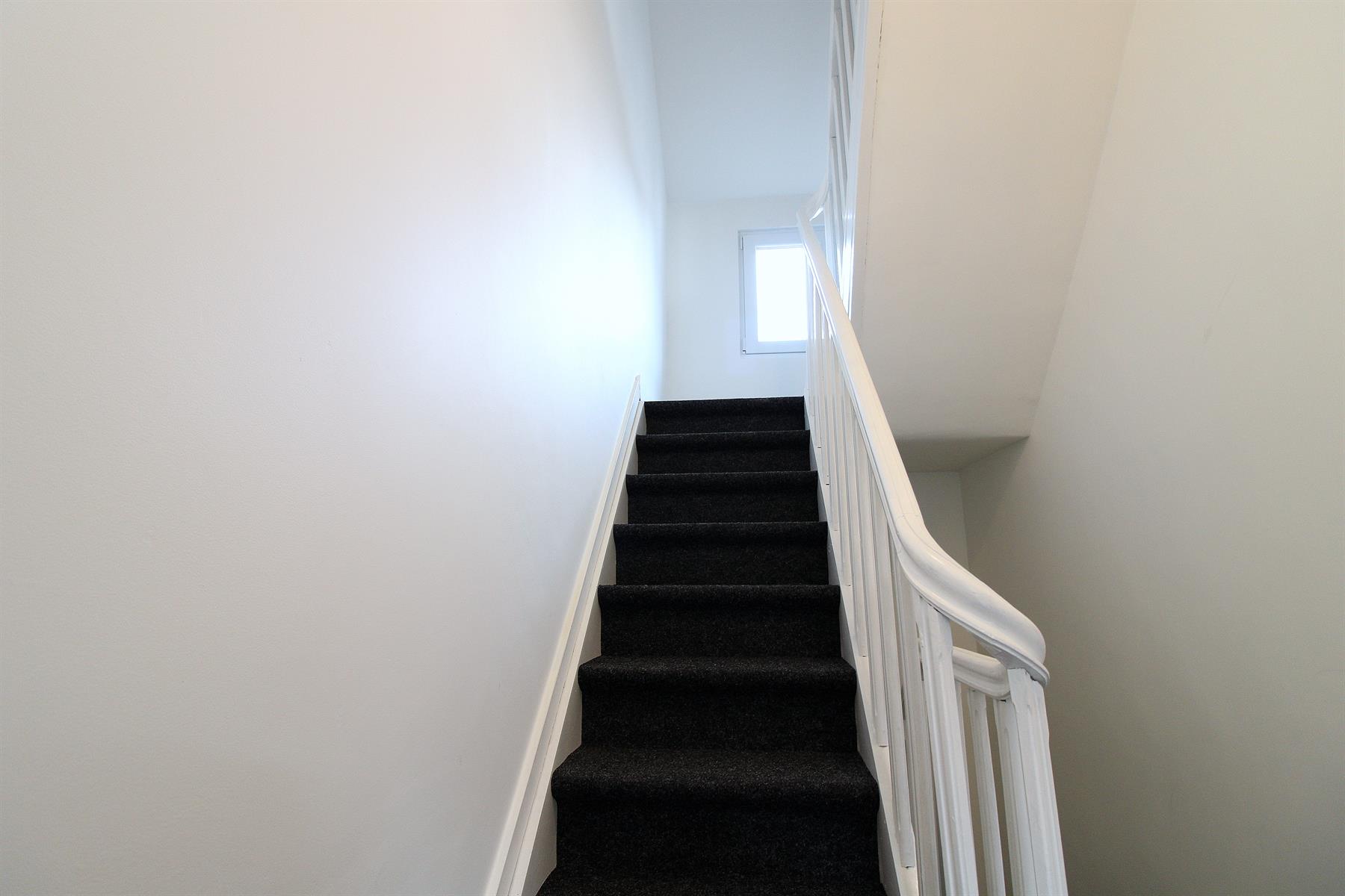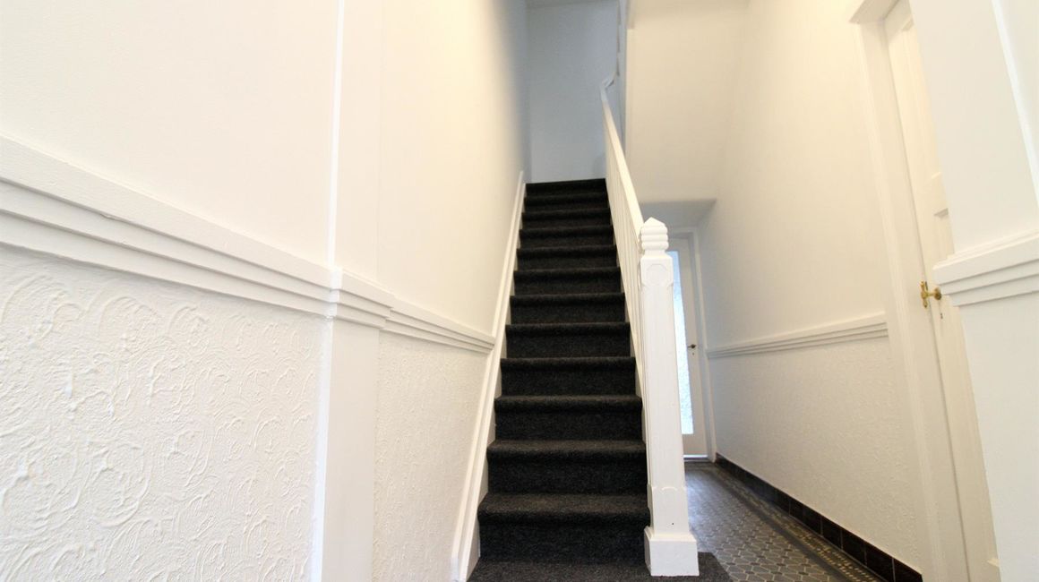 INKOMHAL met houten trap welke toegang geeft naar verdiepingen.