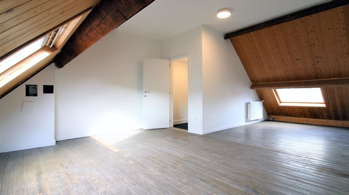 Op de bovenste verdieping bevindt zich de RIANTE SLAAPKAMER ca. 30,7m² voorzien van houten elementen en veluxramen.