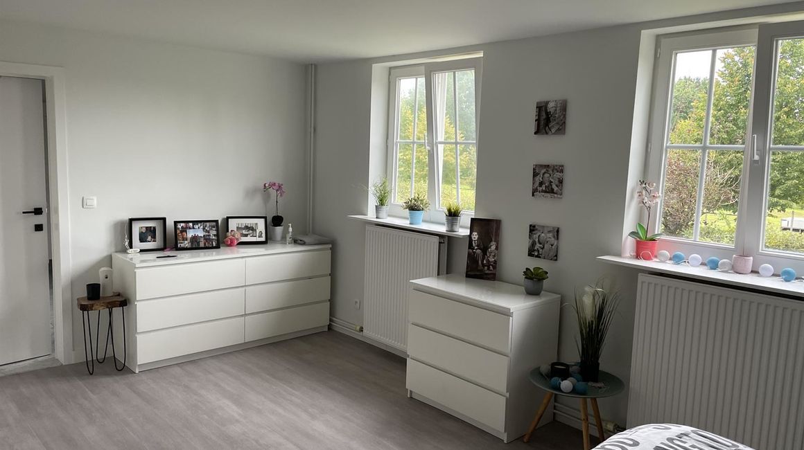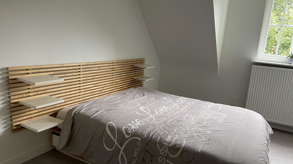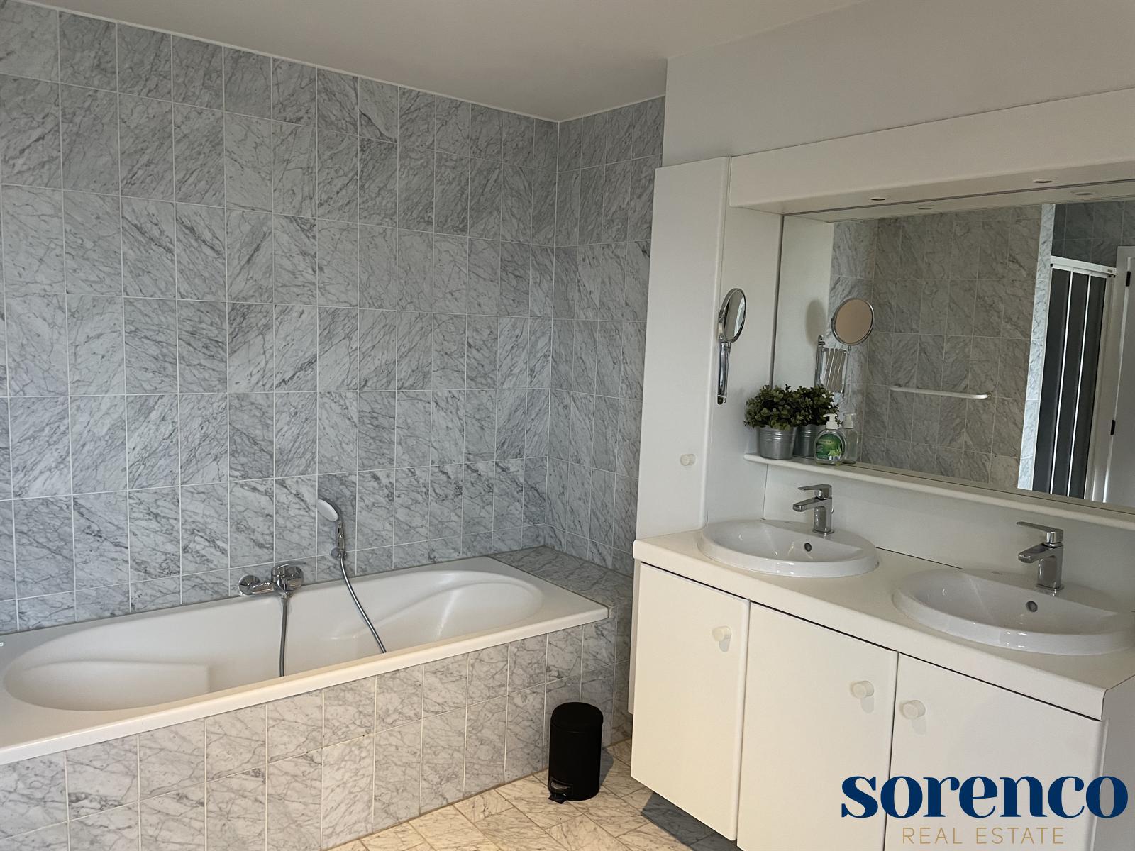 3 slaapkamers met ingemaakte kasten, 1 badkamer (douche, toilet, 2 lavabo’s).