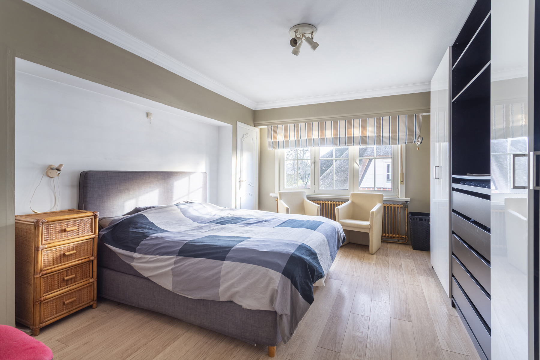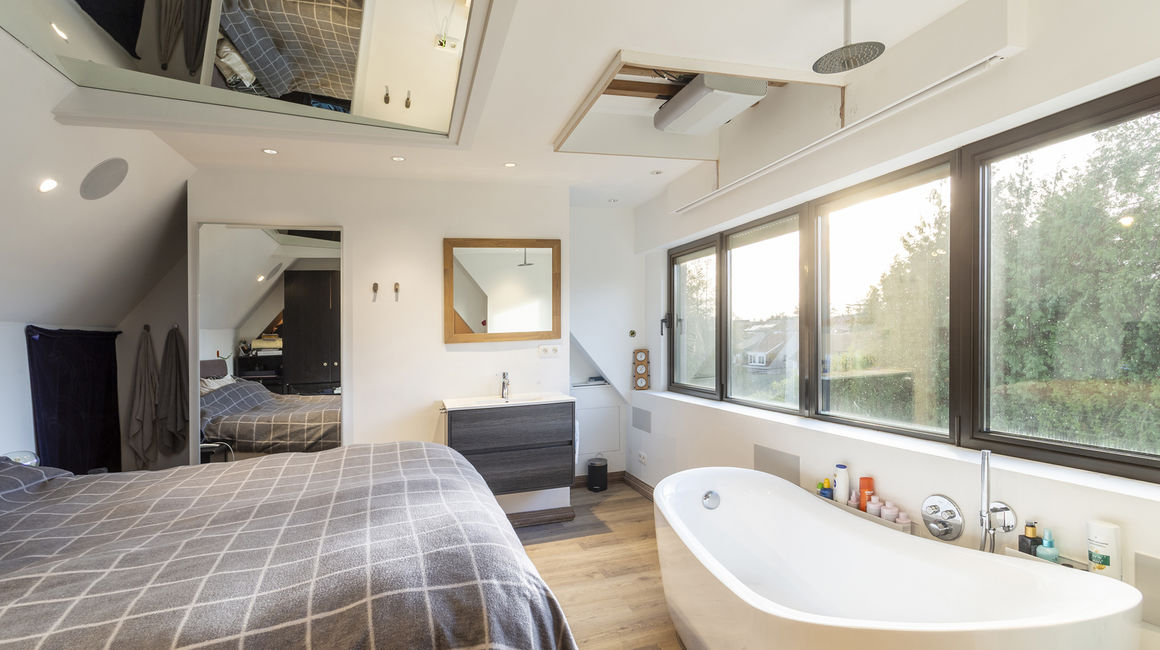 De derde verdieping is volledig gewijd aan de master bedroom, met een luxueuze badkamer voorzien van douche in bad, een inloopdouche, een toilet en prachtig panoramisch uitzicht.