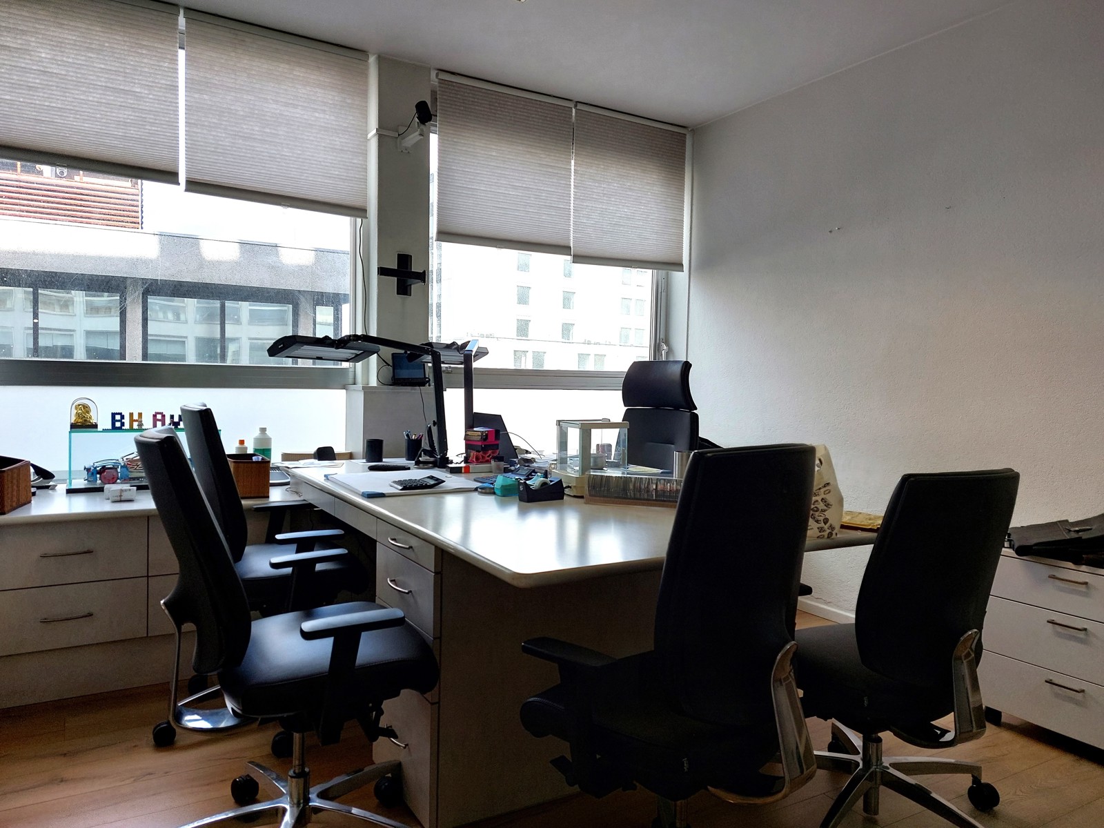 Lumineus kantoor gelegen in het Diamantkwartier nabij Centraal-Station en Stadspark. Ruim kantoor, gelegen op de 6de verdieping aan de voorgevel. Oppervlakte: ca. 83m². Indeling : Inkomhal met veiligheidsdeur en wachtruimte, secretariaat met kitchenette in de ingemaakte kasten, twee burelen met ramen en safe room. Extra: Veel ingemaakte kasten, vloer overal op vernieuwd laminaat veel daglicht! Airco in elk bureel (warm + koud), security aan inkomhal. EPC – Label A. Zeker een bezoekje waard. Contacteer ons nu voor meer info en/of bezichtiging.