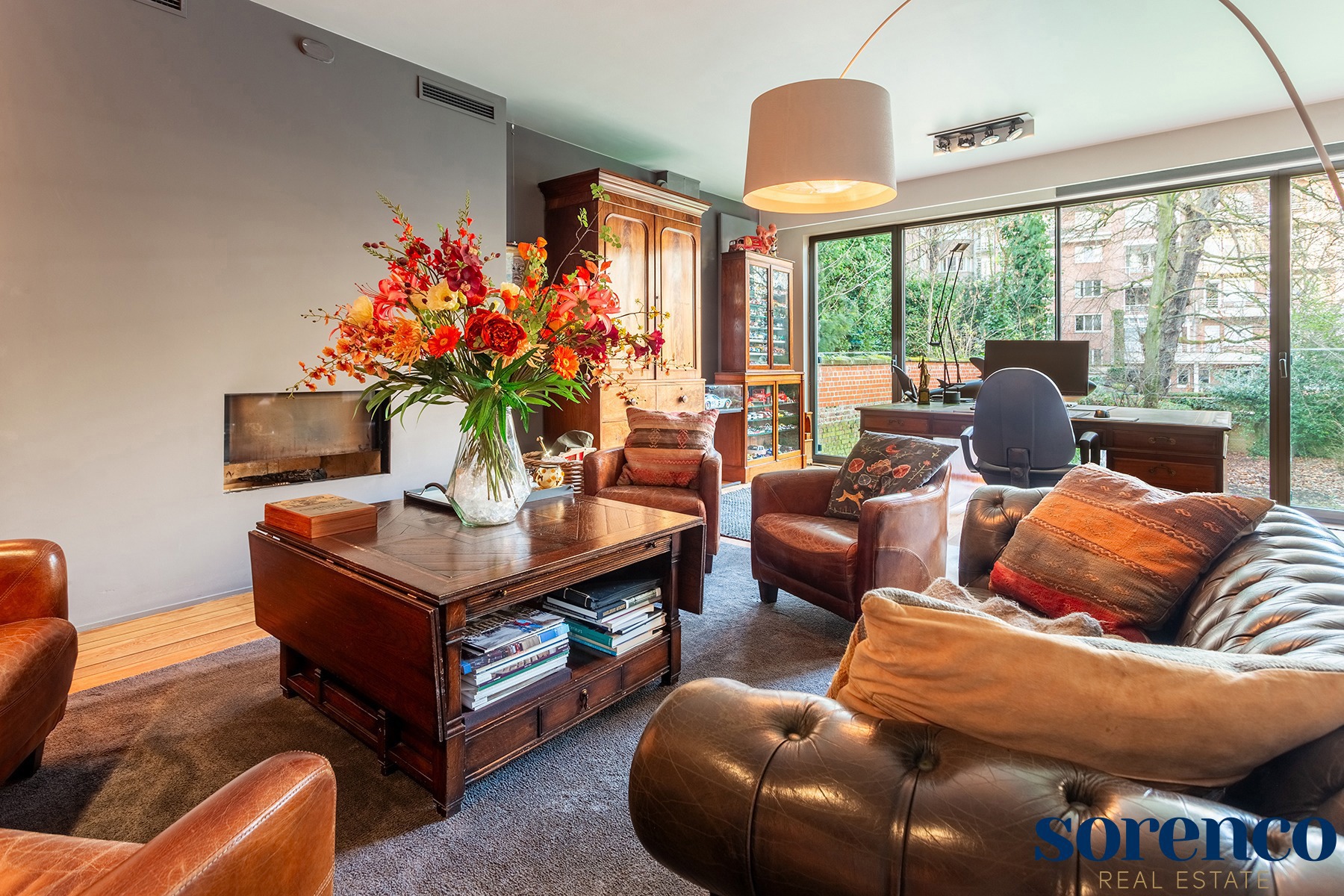 Bij binnenkomst in de stijlvolle inkomhal, voorzien van een apart gastentoilet en vestiaire, wordt u verwelkomd in de royale leefruimte met prachtige parketvloer en openhaard. Deze uitzonderlijk ruimte met adembenemende gevelbreedte geeft via grote ramen uit op de magnifieke privatieve stadstuin, een plek waar u in alle rust en privacy kunt genieten. De leefruimte is ontworpen met aandacht voor veelzijdigheid en biedt plaats aan een eetkamer, een bureauhoek en verschillende zithoeken die naar wens kunnen worden ingericht.