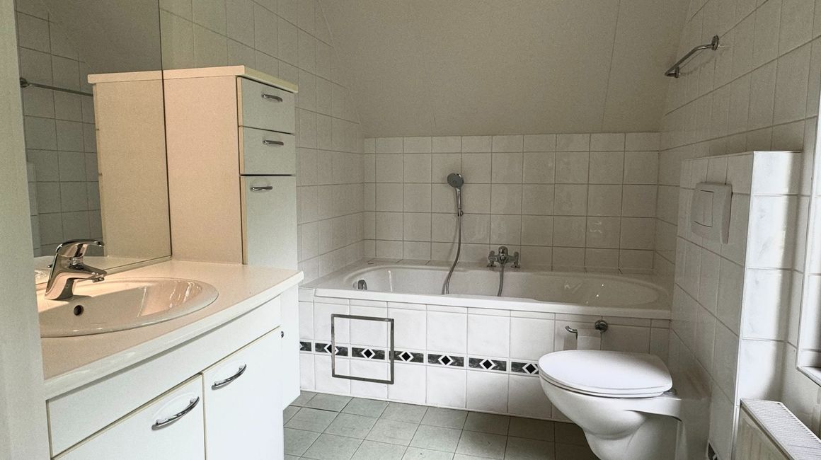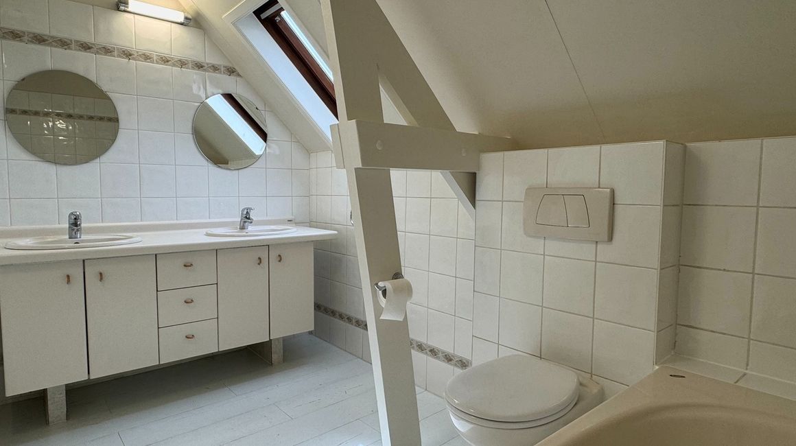 Op de eerste verdieping zijn er 2 SLAAPKAMERS ca. 23m² en 16m² elk voorzien van een ensuite ingerichte BADKAMER.