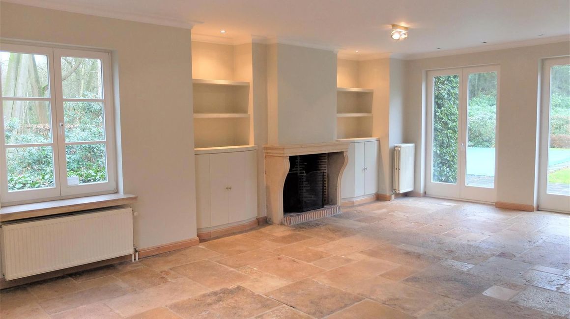 Via de inkomhal met dressing en apart gastentoilet met handenwasser betreedt men de riante, lichte leefruimte met eetkamer en voorzien van open haard.