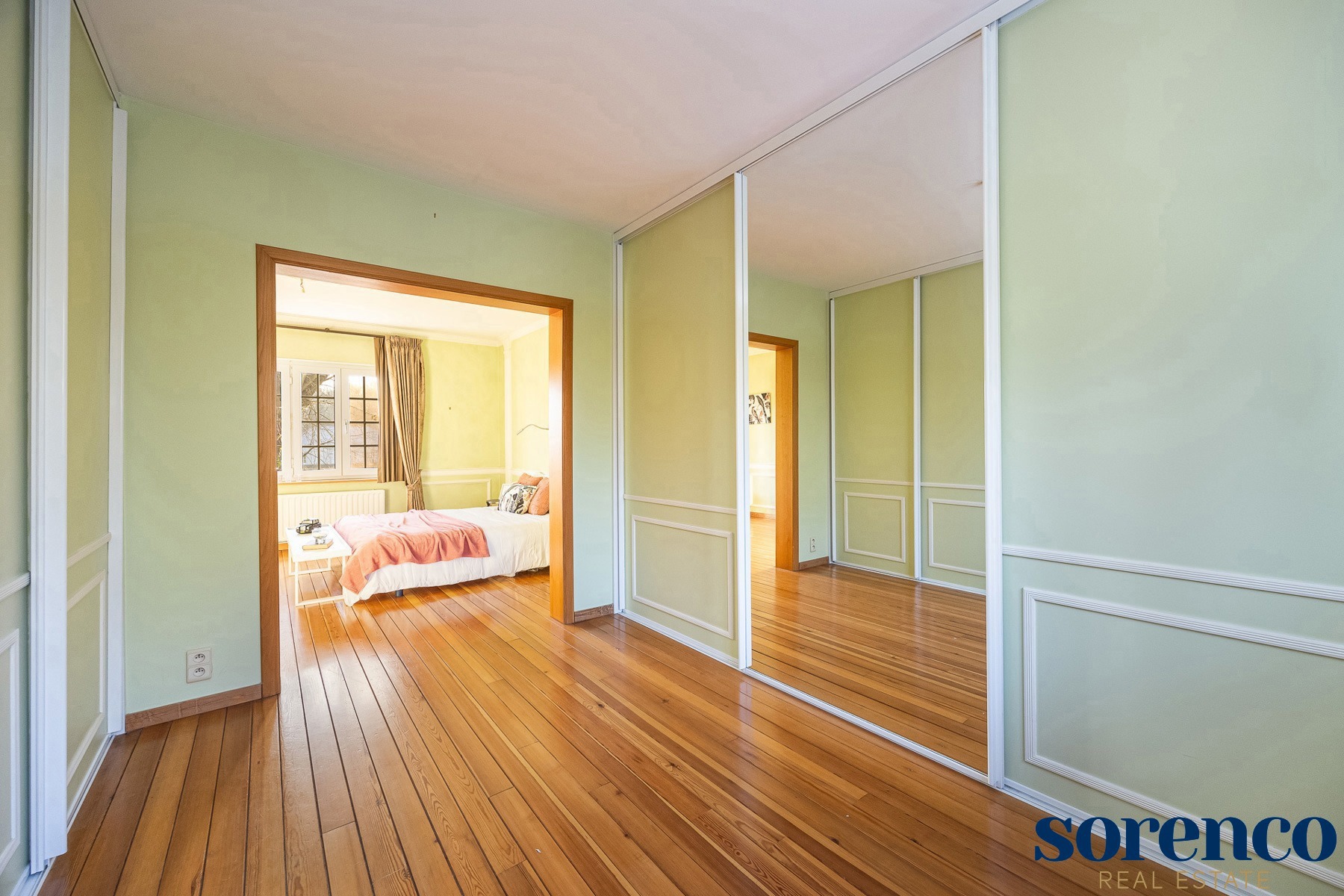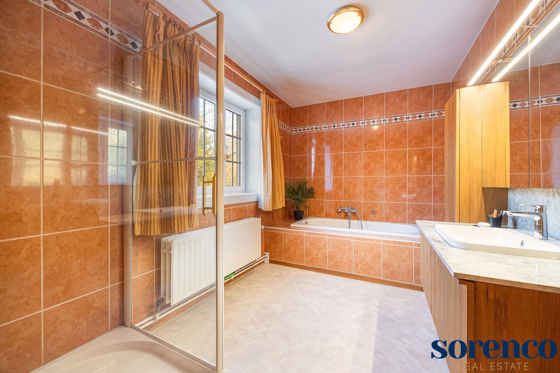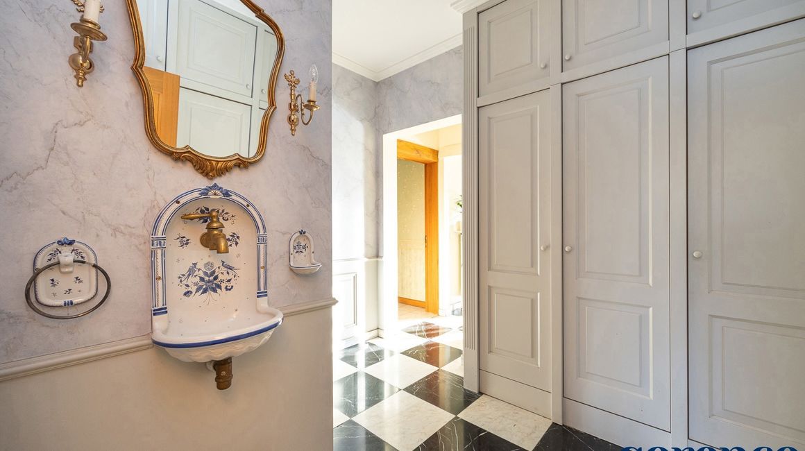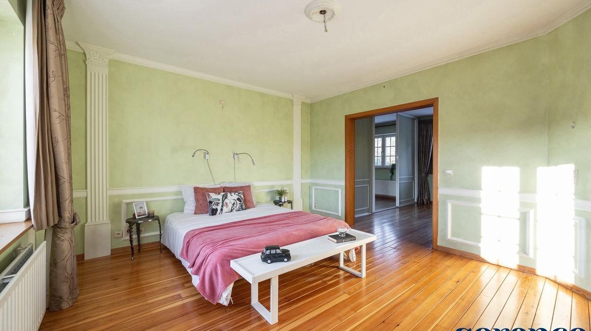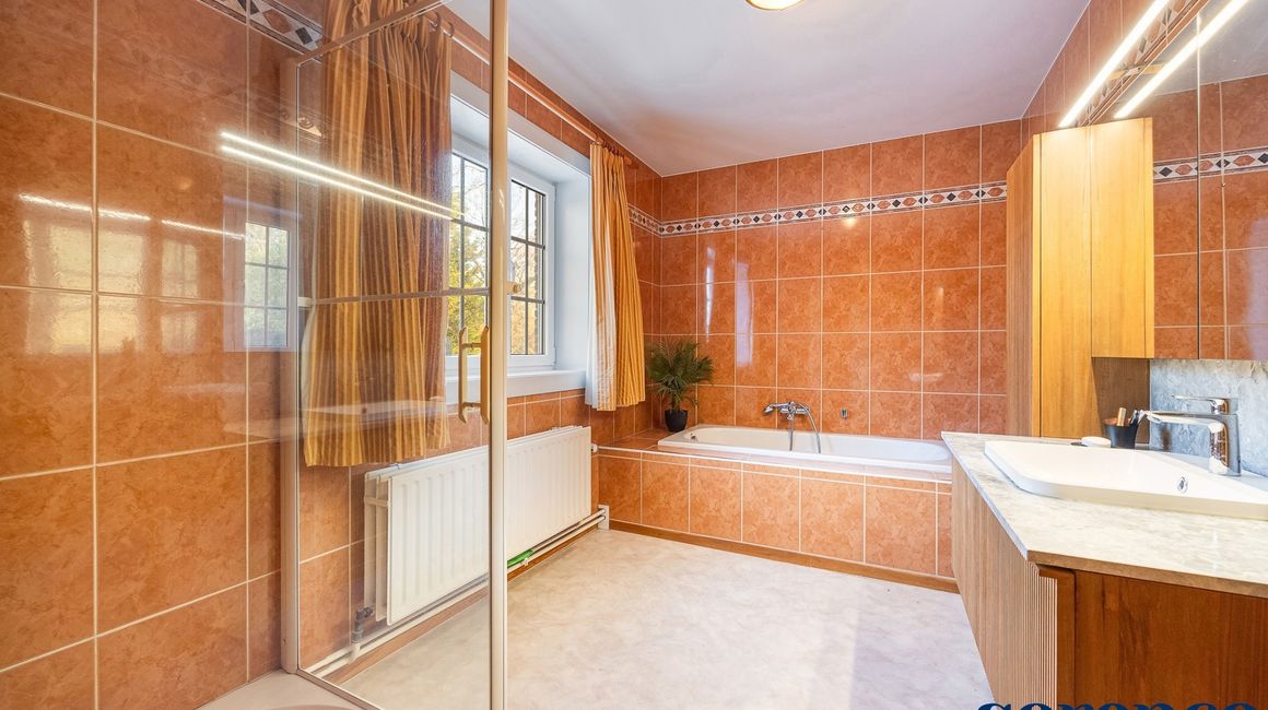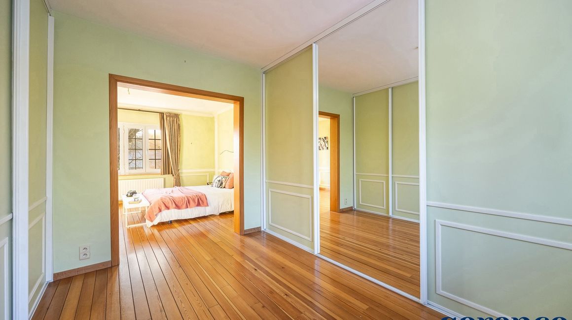 Eerste verdieping:De eerste verdieping beschikt over een overloop op parket met een apart toilet. De MASTERBEDROOM (ca. 18m²), ensuite de DRESSING ca. 10m² en een ingerichte BADKAMER. Deze is uitgerust met een ligbad, een inloopdouche, een dubbele lavabo in een meubel en een apart toilet.
