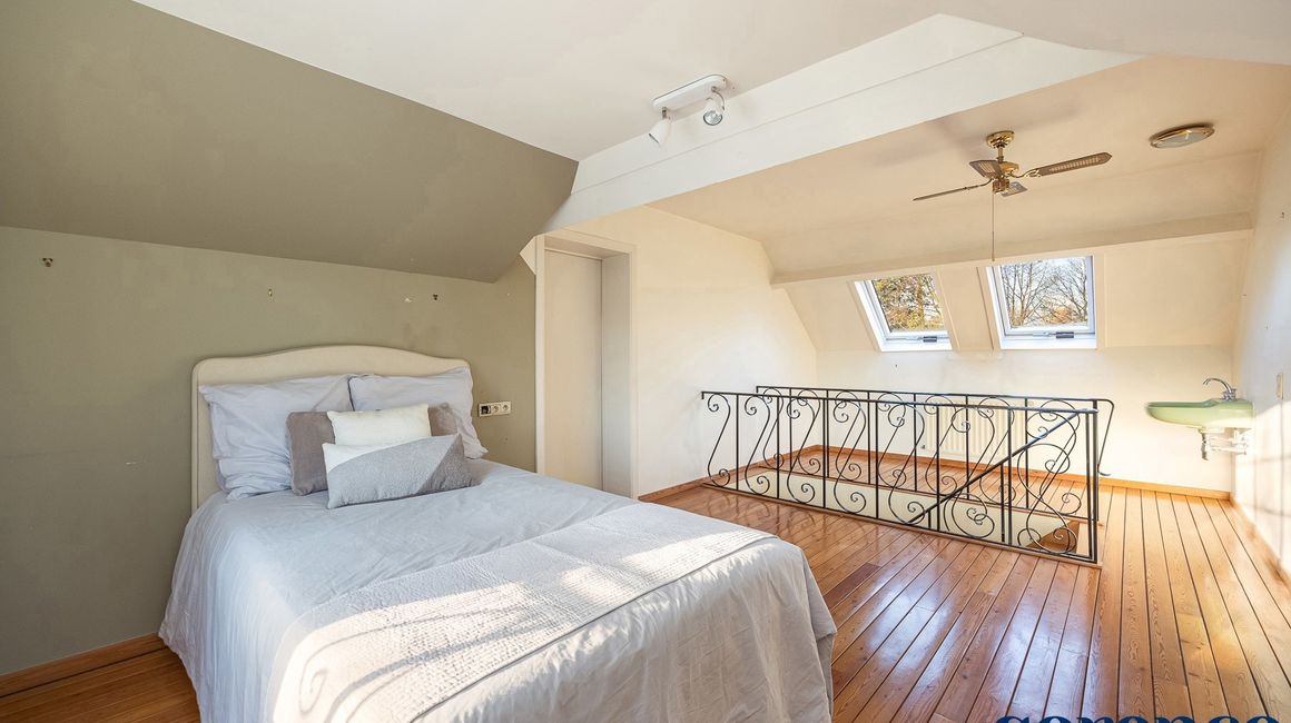 Een POLYVALENTE RUIMTE (ca. 23m²) op parket, ideaal als extra slaapkamer, hobbykamer of logeerkamer voorzien van een lavabo. Verder zijn er twee ruime ZOLDERKAMERS (ca. 17m² en 20m²), beide van binnenuit geïsoleerd.
