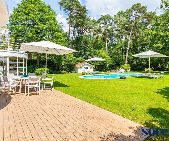 Op een van de meest prestigieuze locatie in de Bellemond wijk te ?s Gravenwezel Schilde, vindt u deze moderne en lichtrijke architectenvilla op een magnifiek perceel van 2.675mē, gebouwd door architect John Bontinck. Gelegen in het groen maar tegelijkertijd centraal nabij de dorpskern, straalt deze villa een vakantiesfeer uit die doet denken aan de Côte d'Azur en de Provence.