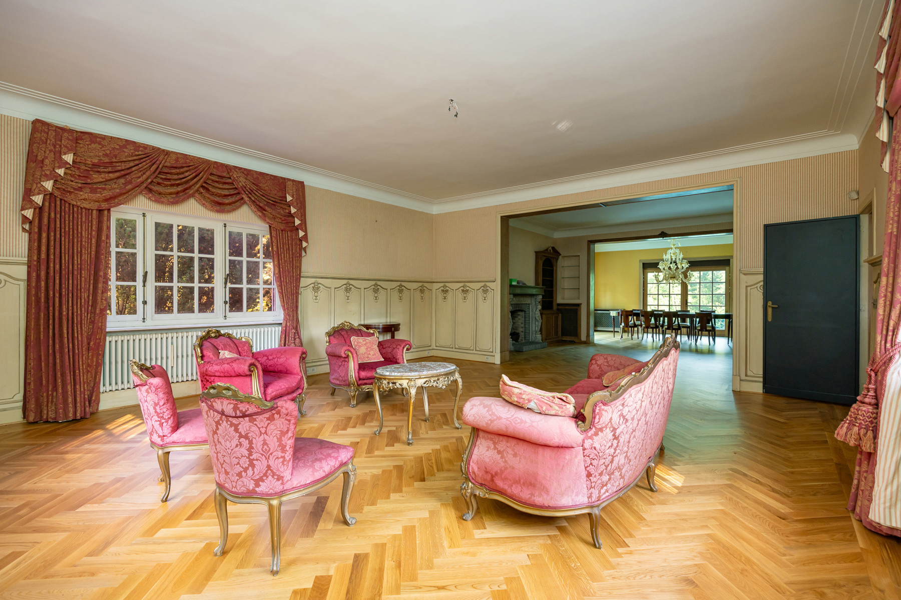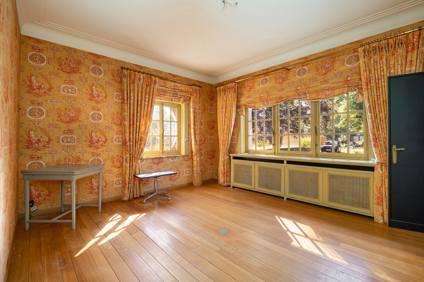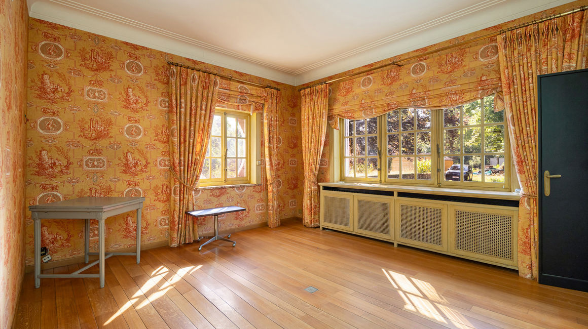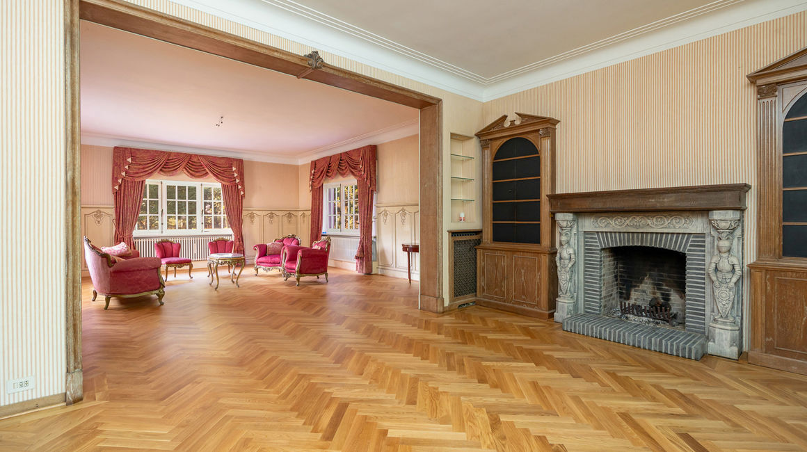 * Tal van karaktervolle elementen: parketvloeren, marmeren vloeren en raamtabletten, originele schouwen, lambriseringen.
