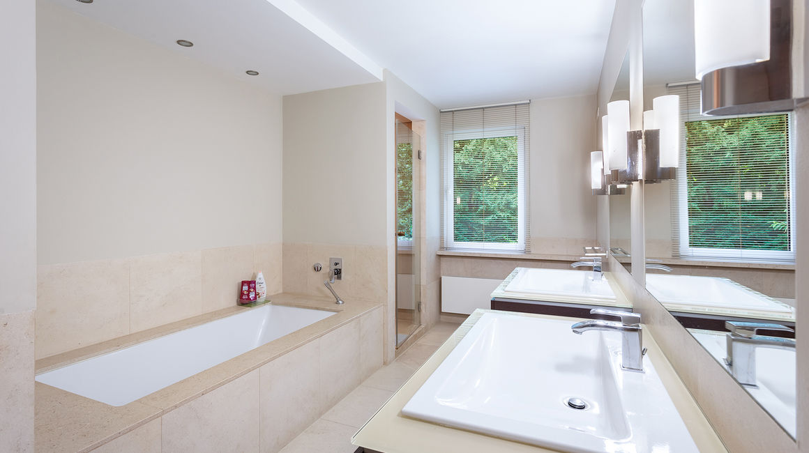 De eerste verdieping is bereikbaar via de hoofdtrap als via de lift. Op deze verdieping vinden we 4 ruime en volwaardige slaapkamers op parket, ensuite een ingerichte badkamer en walk-in dressing.
