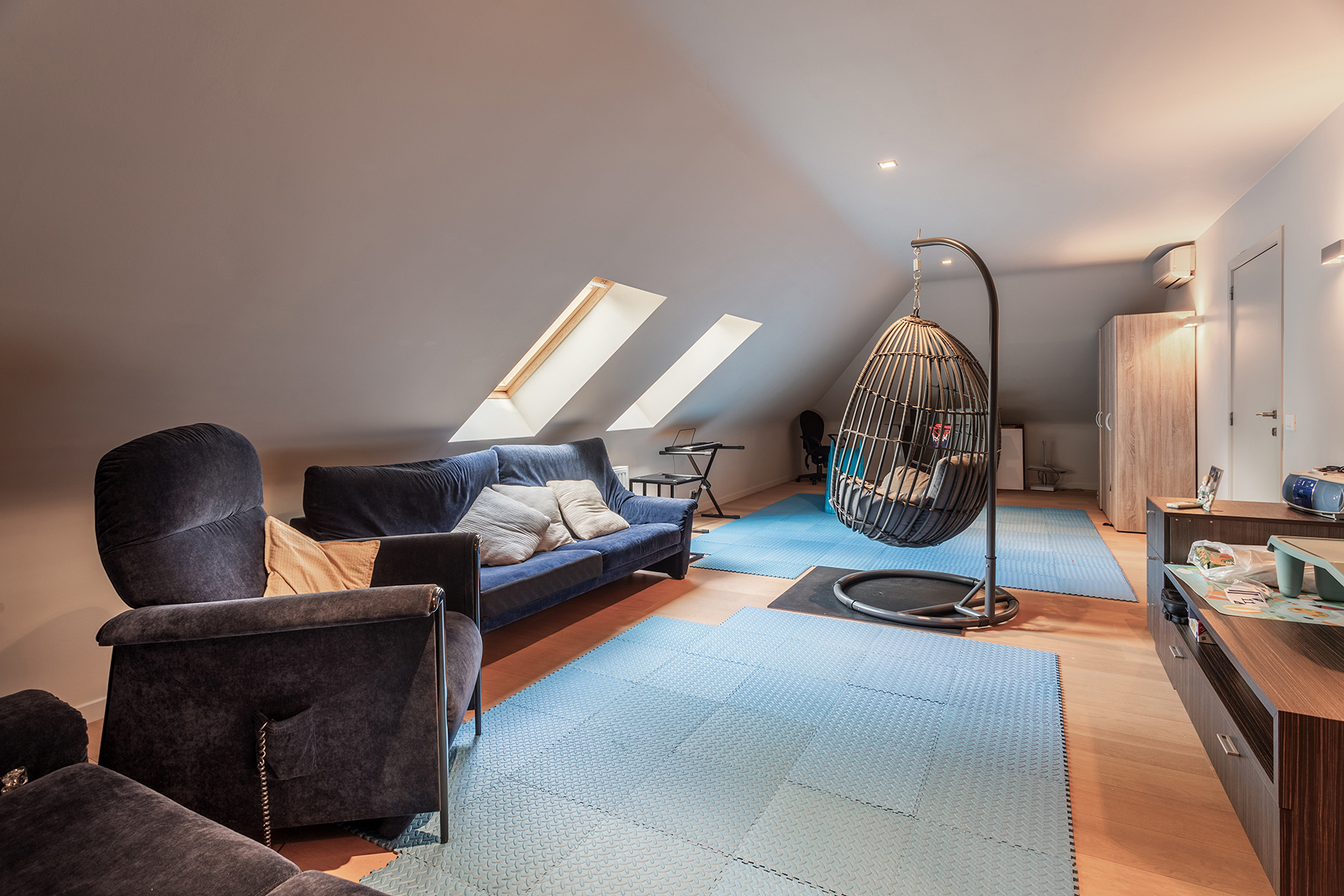 De tweede verdieping is bereikbaar via de trap en de lift. Hier bevinden zich nog drie extra ruimtes / slaapkamers op parket, een extra douchekamer en een technische ruimte. De grootste ruimte kan gebruikt worden als ontspanningsruimte, fitnessruimte, yogastudio of zelfs een thuiswerkplek. Dankzij de royale afmetingen en flexibele indeling is deze verdieping perfect aan te passen aan diverse woon- en leefbehoeften.