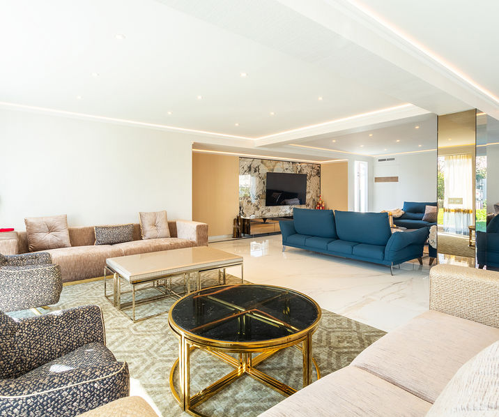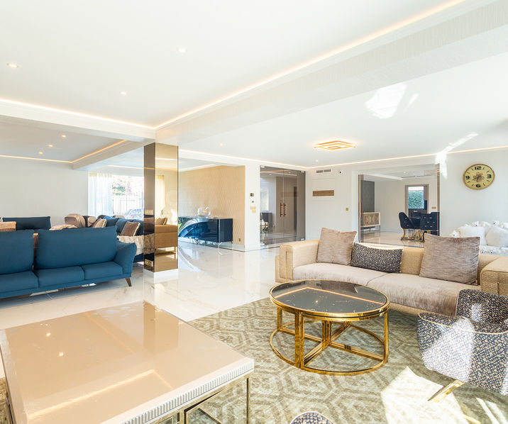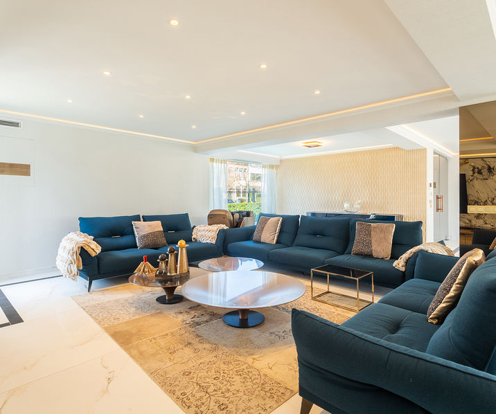 De royale LEEFRUIMTE (ca. 6m30 x 10m50) bestaande uit diverse zithoeken uitgevend op de tuin geeft toegang tot de EETKAMER (ca. 6m20 x 5m30) en de volledig geïnstalleerde KEUKEN (ca. 4m x 7m70) voorzien van een kookeiland, een ontbijthoek, ingebouwde koffiecorner, tal van opbergkasten en alle toestellen (dubbele spoelbak, kokend waterkraan, oven, micro, ijskast, diepvries, afwasmachine) aansluitend heeft u een ruime BIJKEUKEN/berging (ca. 3m50 x 3m) met tal van opbergkasten en een extra koelkast en diepvries.