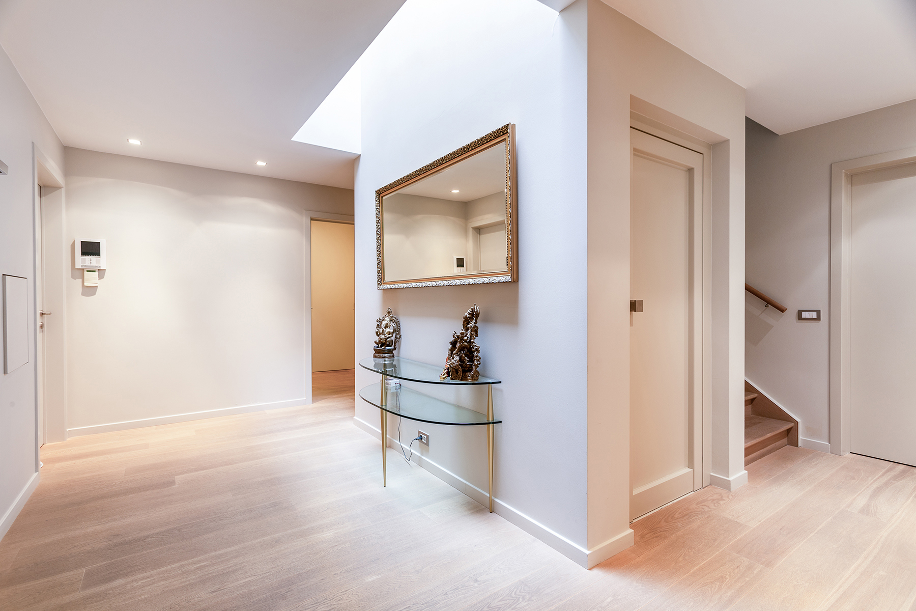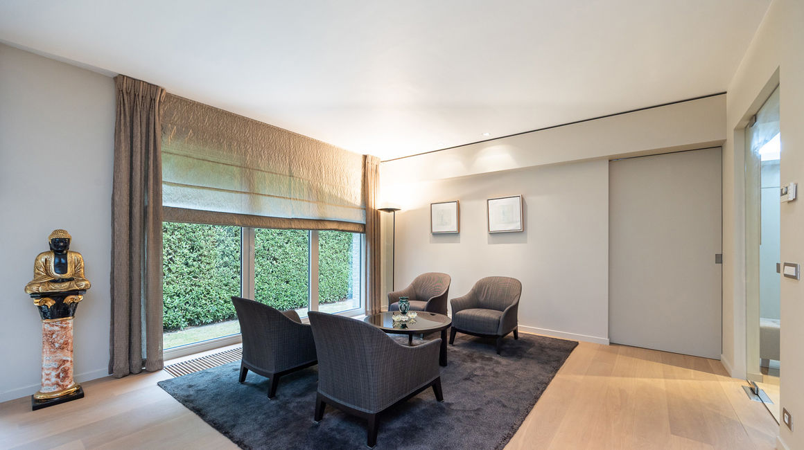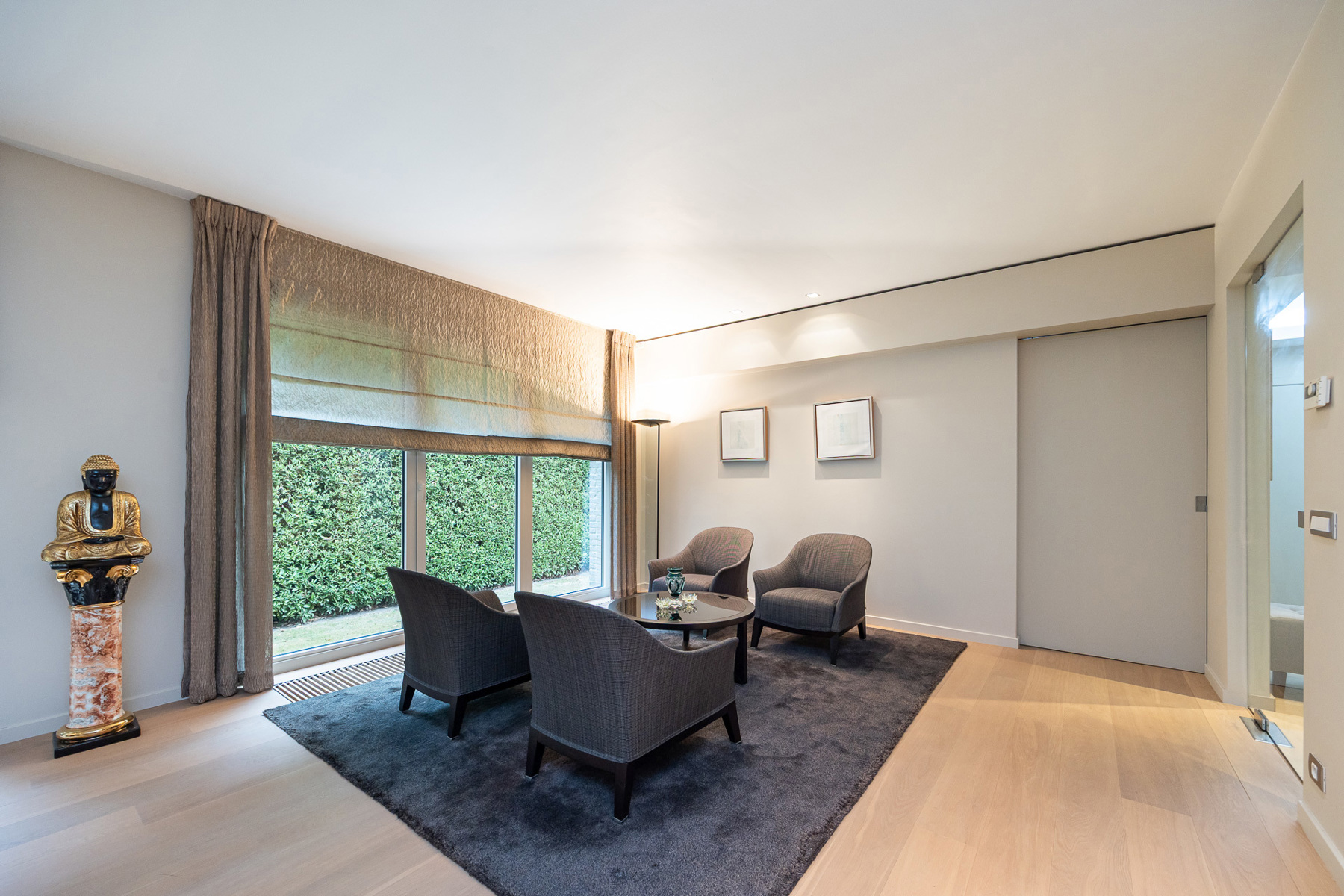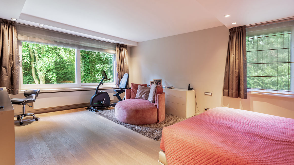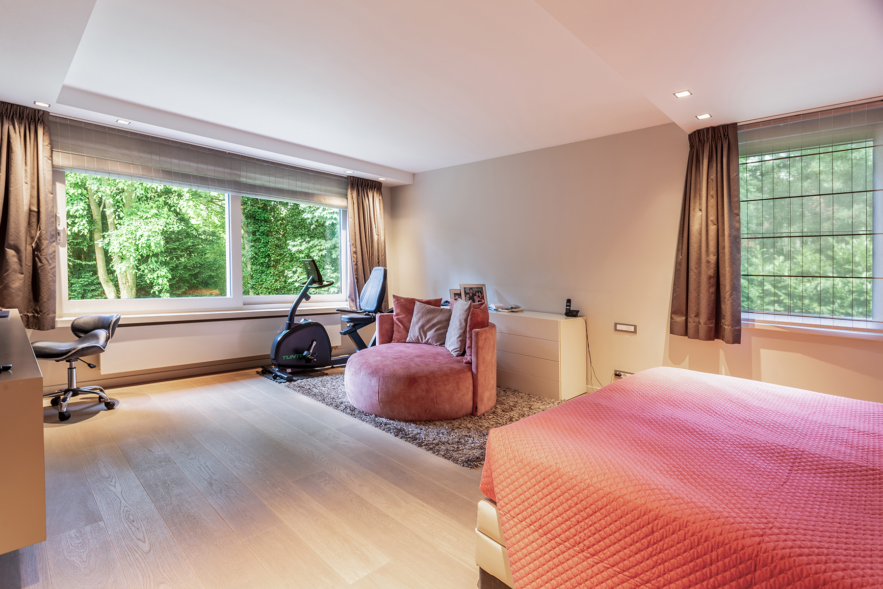 De eerste verdieping is bereikbaar via de hoofdtrap als via de lift. Op deze verdieping vinden we 4 ruime en volwaardige slaapkamers op parket, ensuite een ingerichte badkamer en walk-in dressing.