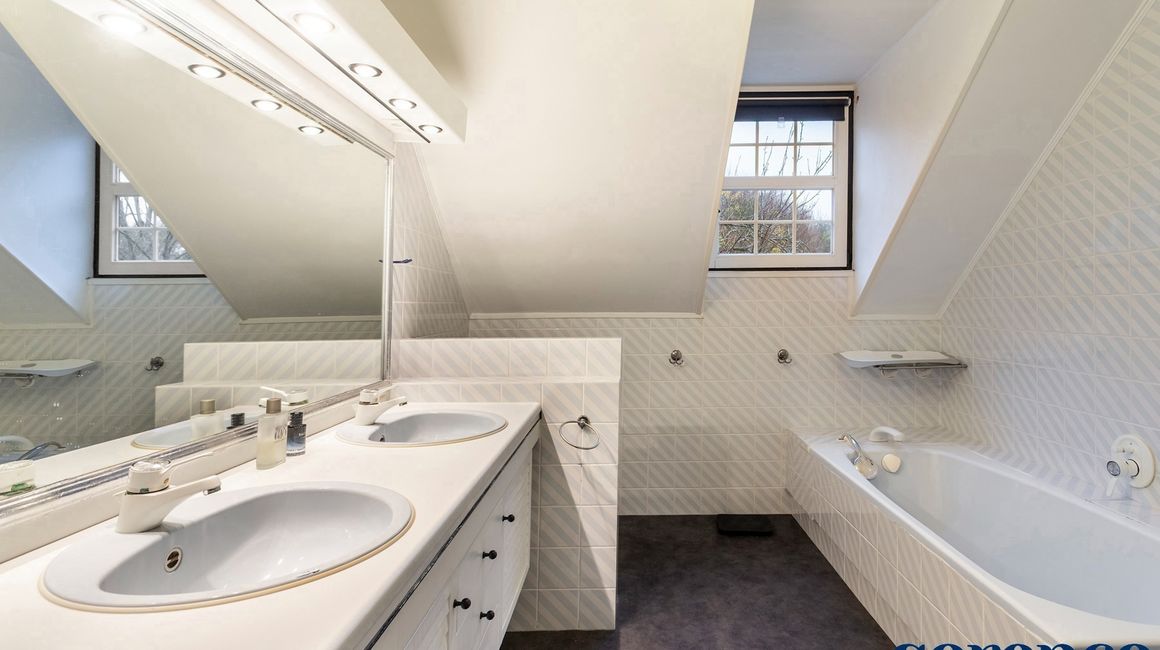 Slaapkamer 1 ca. 17m² met dressing en ensuite BADKAMER ca. 10m² voorzien van dubbele lavabo in kastenmeubel, toilet, bad en douche. Verder nog 3 slaapkamers ca. 13m² - ca. 12m² en ca. 8m².