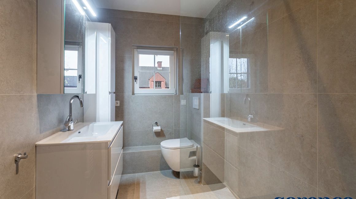 Daarnaast is er nog een tweede nieuw gerenoveerde BADKAMER van ca. 6m², uitgerust met lavabo, toilet en inloopdouche.
